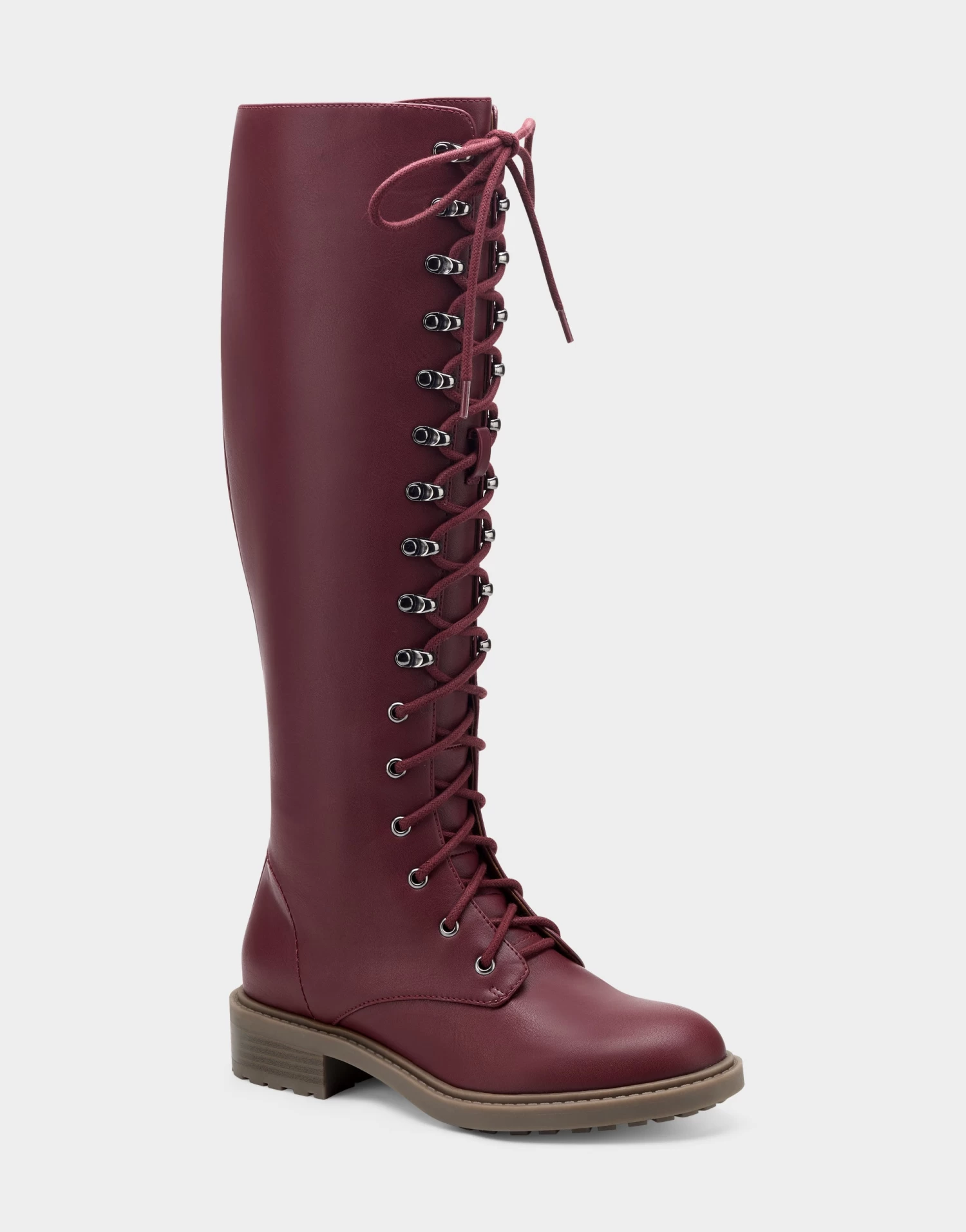 An intricate lace-up closure defines the Aiden tall bootโ โa standout style from work to weekends. Finished with a functional zipper closure for ease of wear; on-trend lug soles round out the look with a sturdy sensibility.