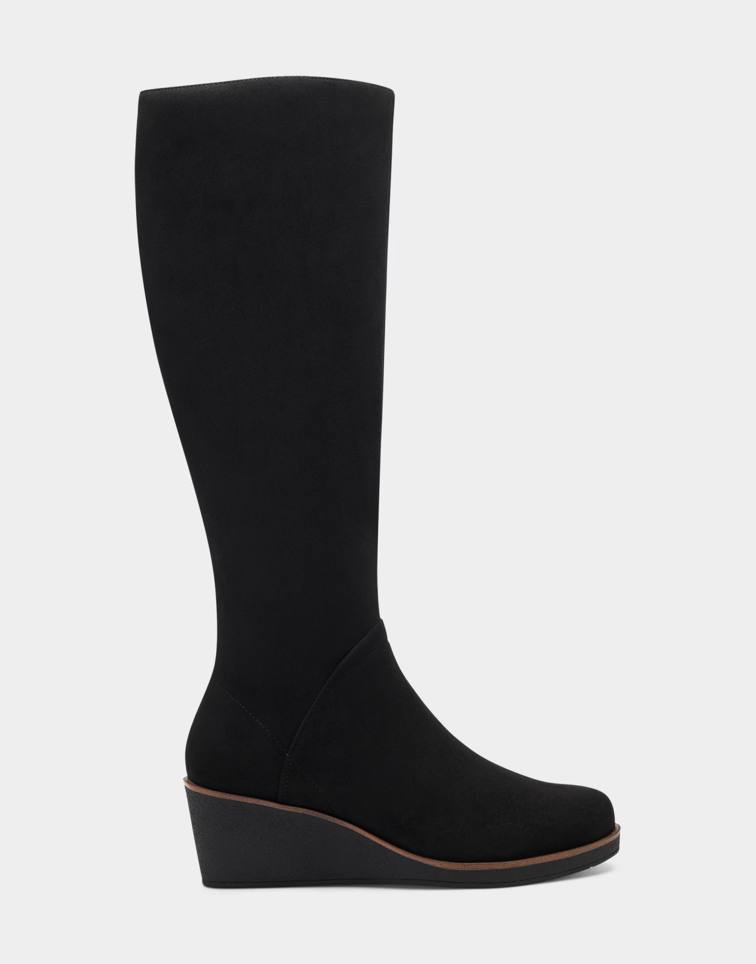 Youโll be glad itโs getting chilly outside because it will mean more opportunities to wear these splendid tall boots. They go with everything, from your favorite jeans to skirts and dresses. Double zipper closures give you the freedom to extend the shaft for an extra 2 inches of space. Perfect for tucking in those favorite jeans! Platform wedge culminates with a leather welt detail.ย