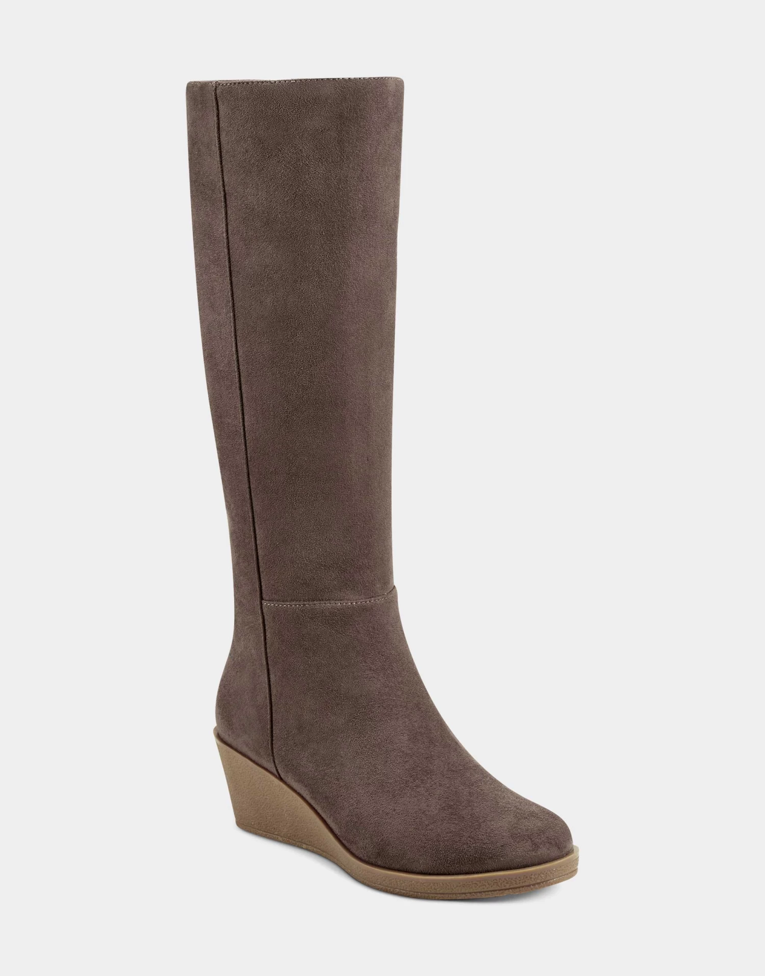 A wedge heel amps up the comfortable, walkable quotient on the Brenna tall boot. Sleek and sophisticated, it’s an ideal match for everything from dresses and skirts to sleek pants and skinny jeans. A timeless finishing touch from day to night, whether for work or weekends.