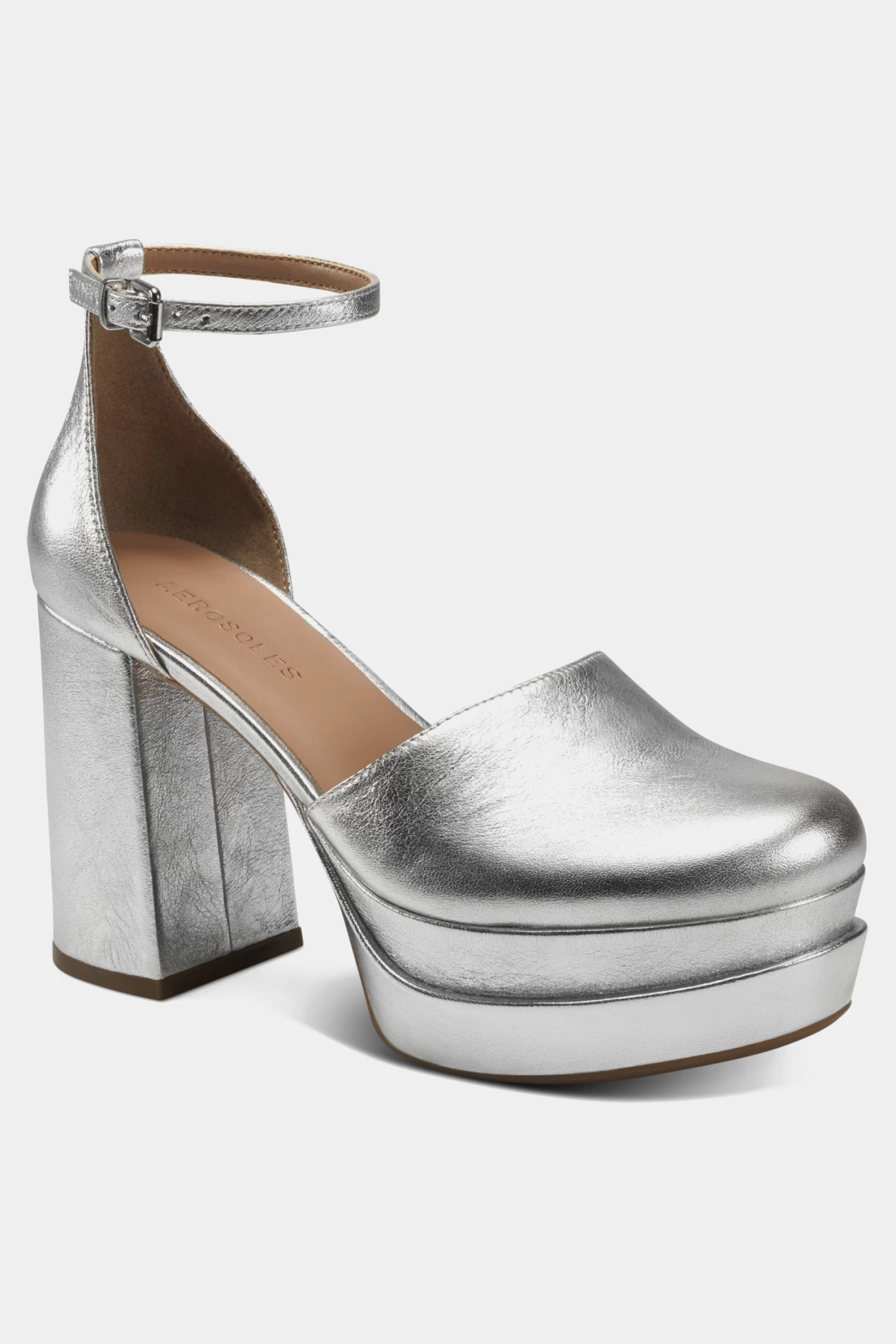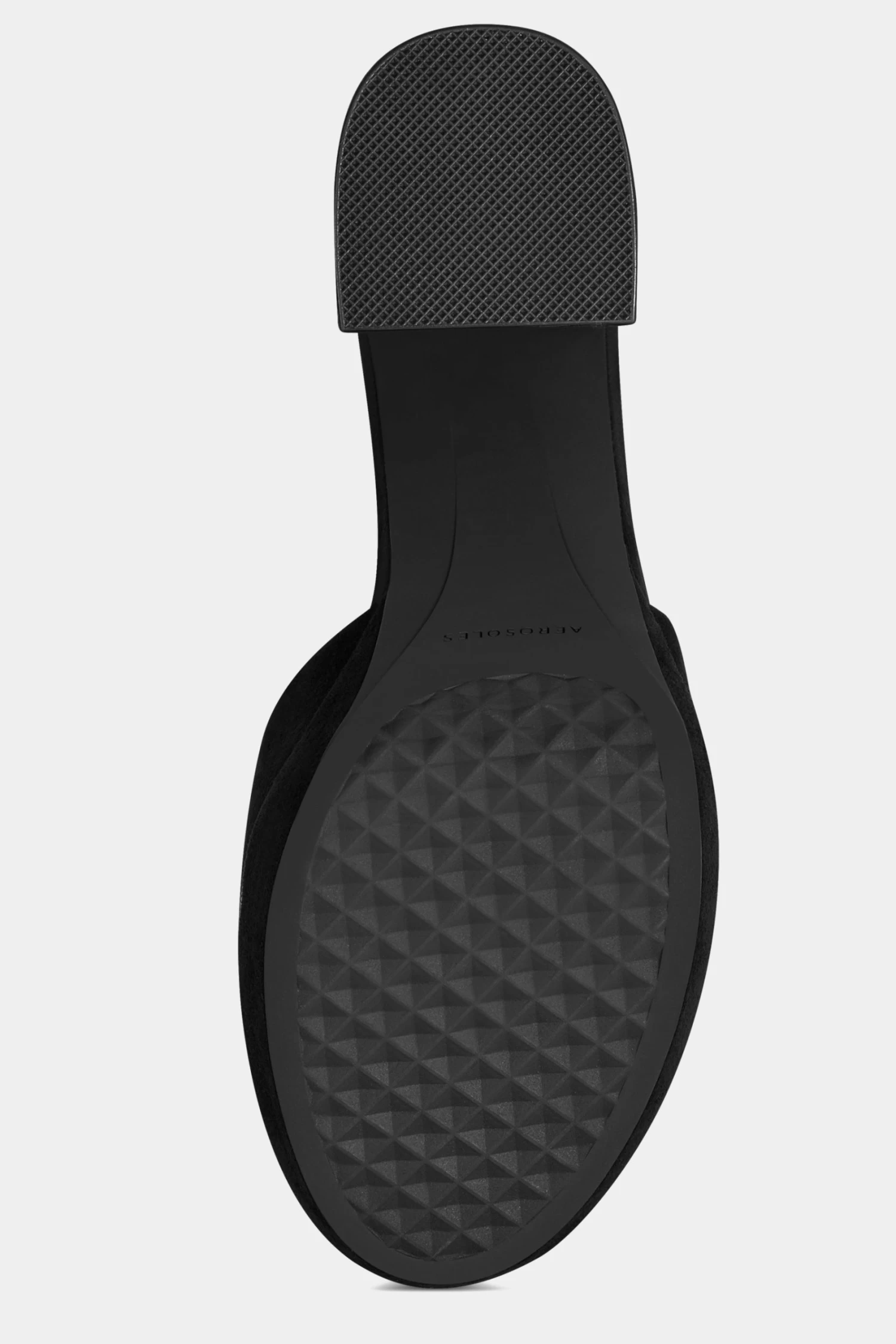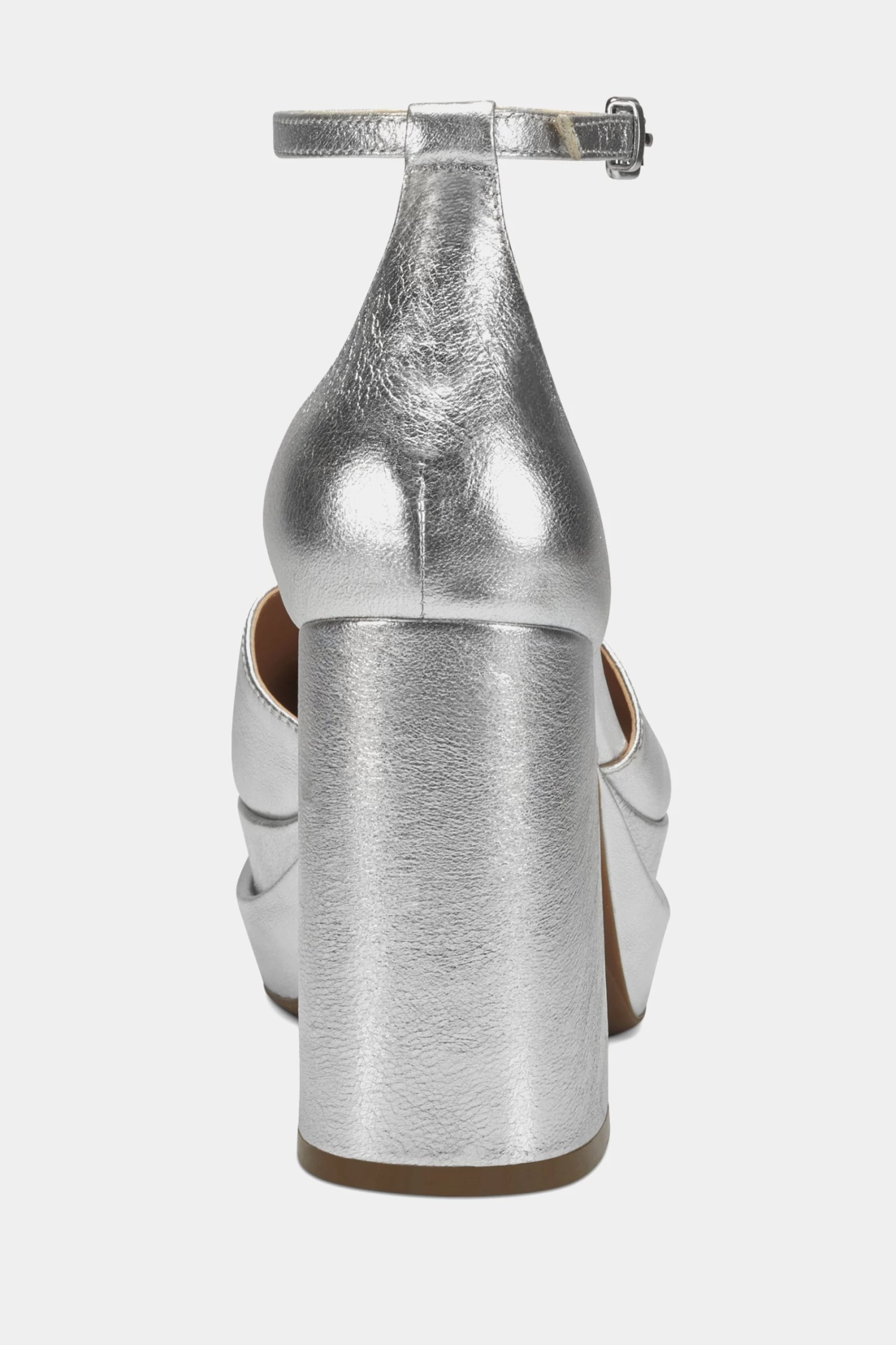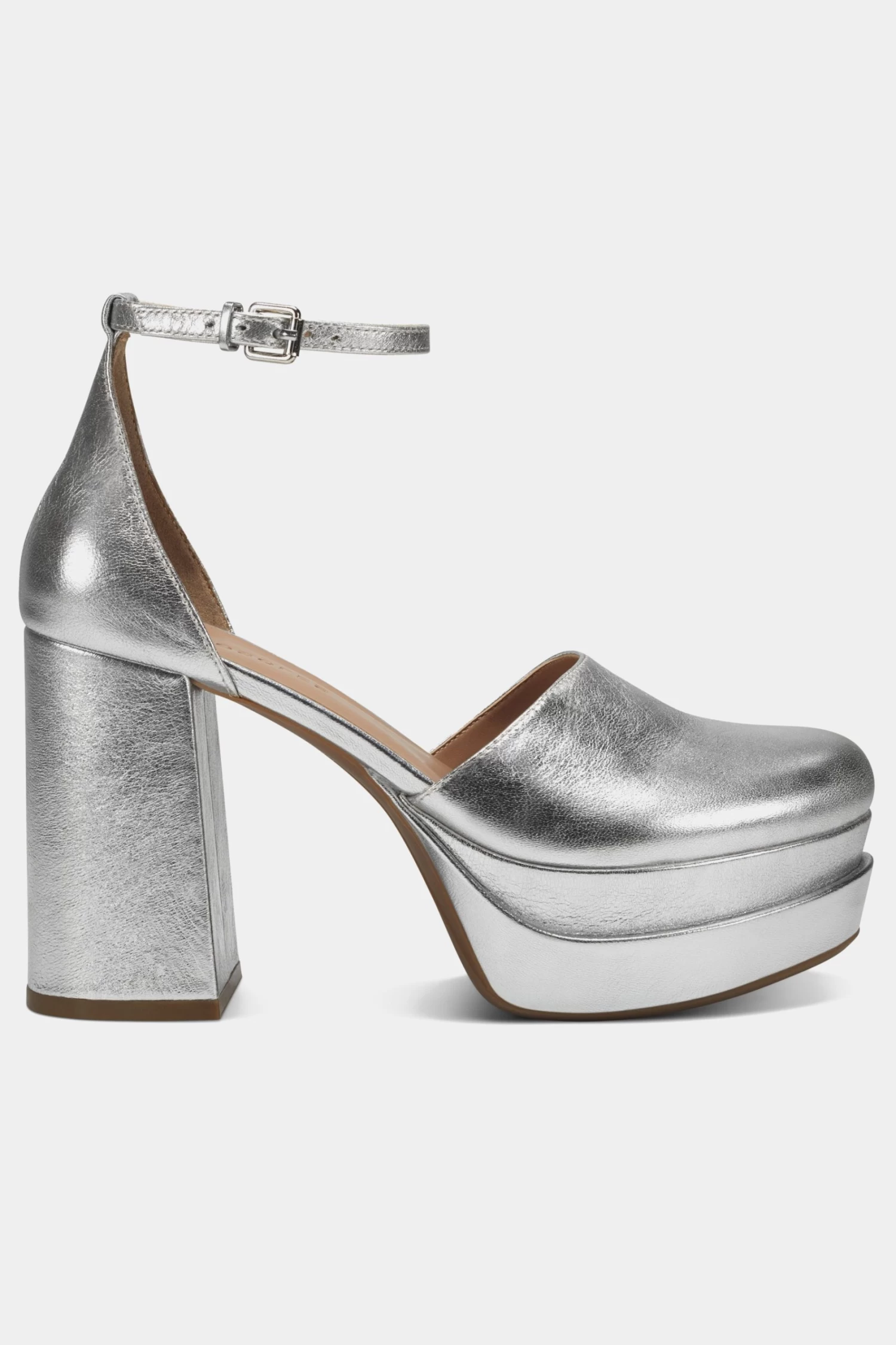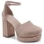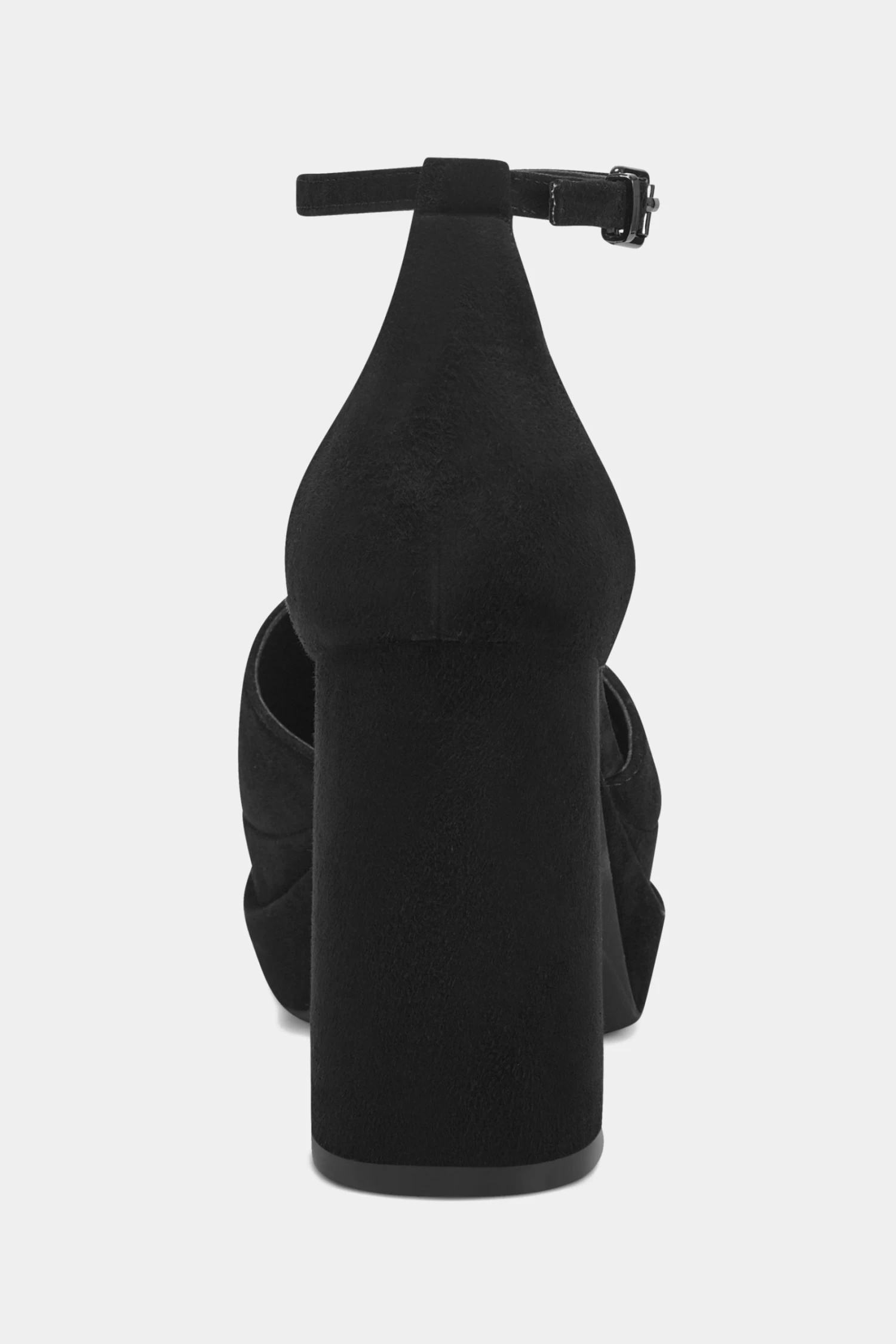 A must-have modern classic: Platform soles make a retro-inspired statement on the Callan pump. Adorned with a brass buckle on the ankle strap, it’s crafted in soft faux suede. Pairs perfectly with a sleek pencil skirt at the office or a cocktail dress for your next night out.