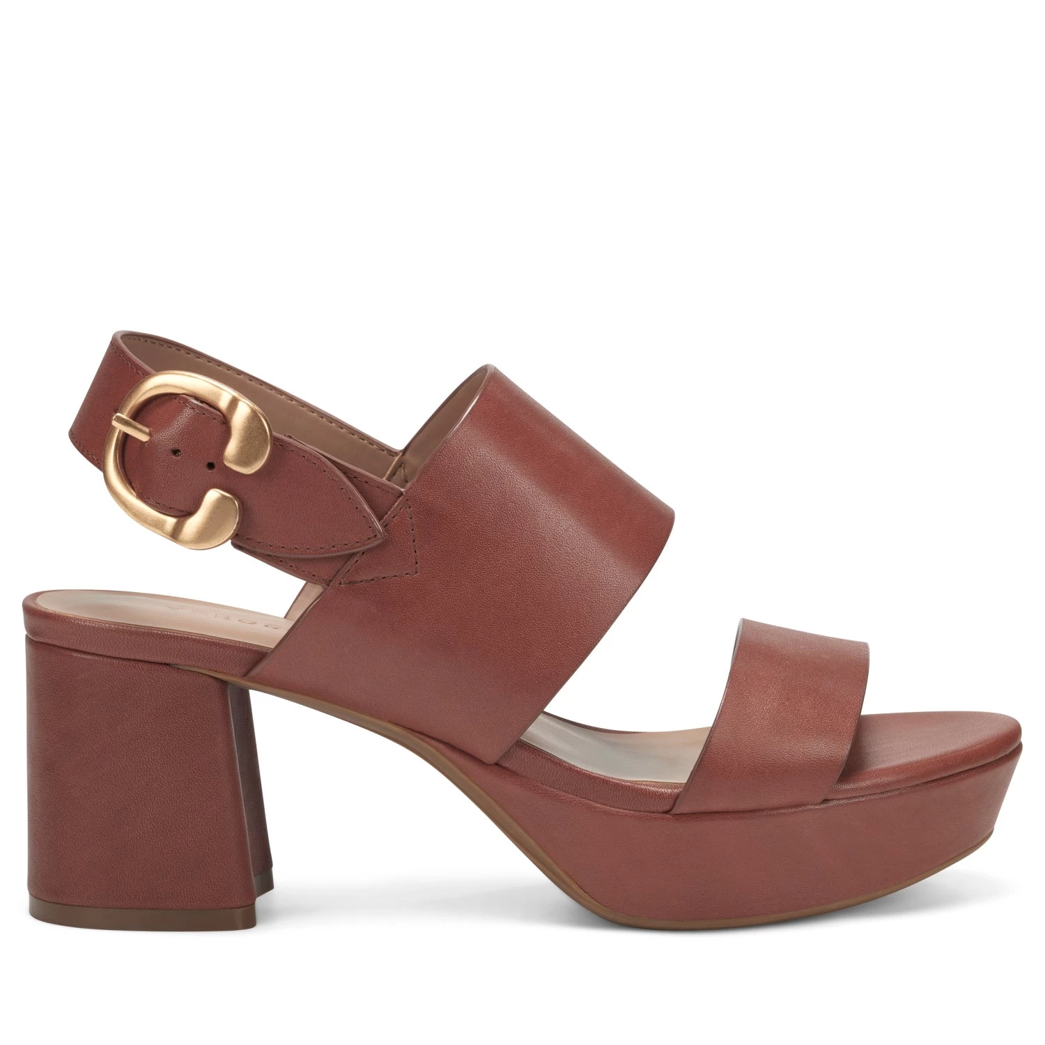 Retro inspired yet altogether modern, the Camera sandal stands out in a crowd, and is made with luxe Italian leather. Platform soles literally elevate the look by adding height; polished signature buckles complete the look as a refined style statement. Rubber composite soles with a unique diamond pattern disperse friction away from the foot, ensuring total comfort. 1 1/4″ Heel. Leather Upper, balance Synthetic Materials.