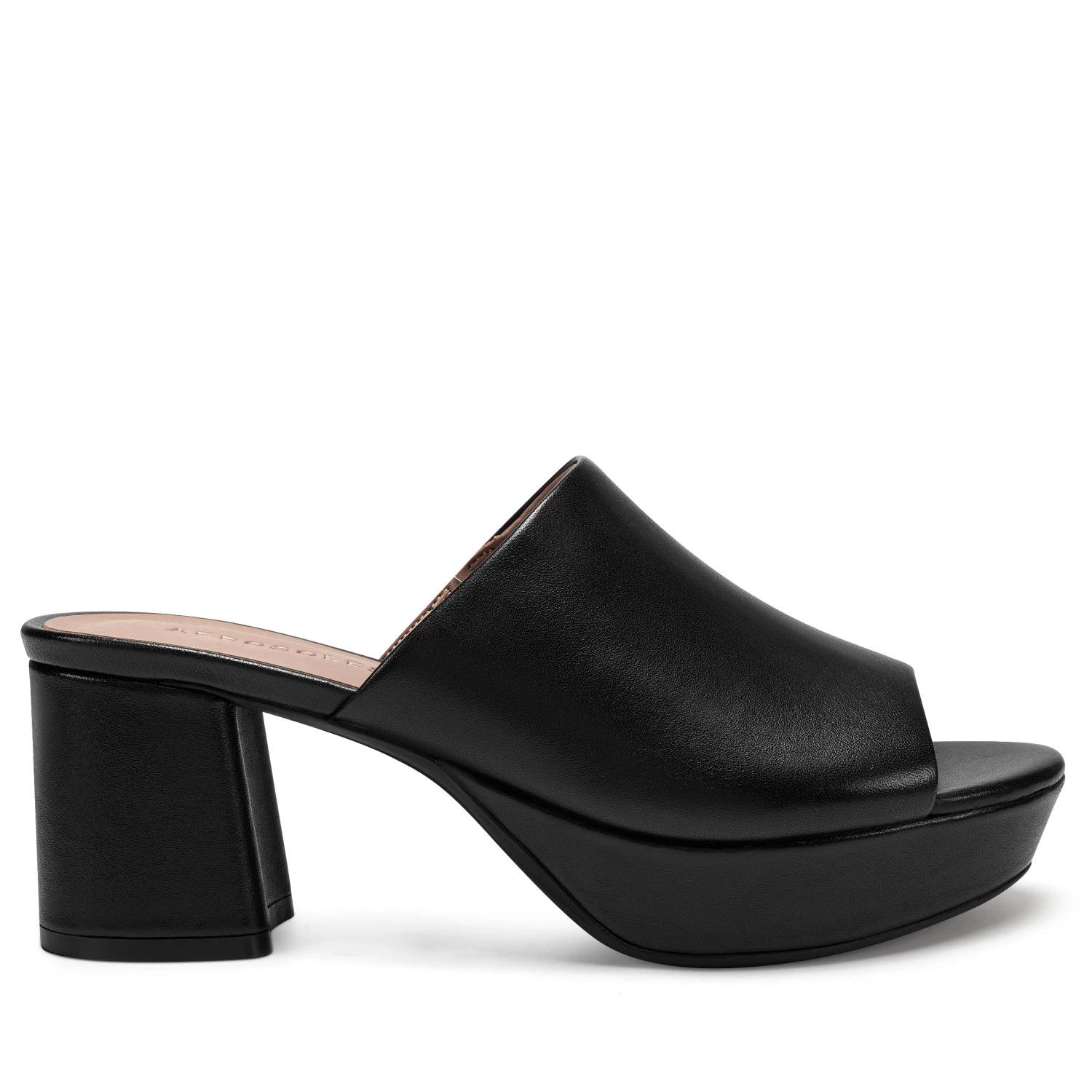 A study in contrast: ’70s-inspired platform soles make a modern statement on the Cassy leather slide sandal, finished with cork block heels. Simple yet sophisticated, this style transitions seamlessly from morning meetings to weekend brunch. 2 1/4″ Heel. Leather Upper, Balance Synthetic Materials.