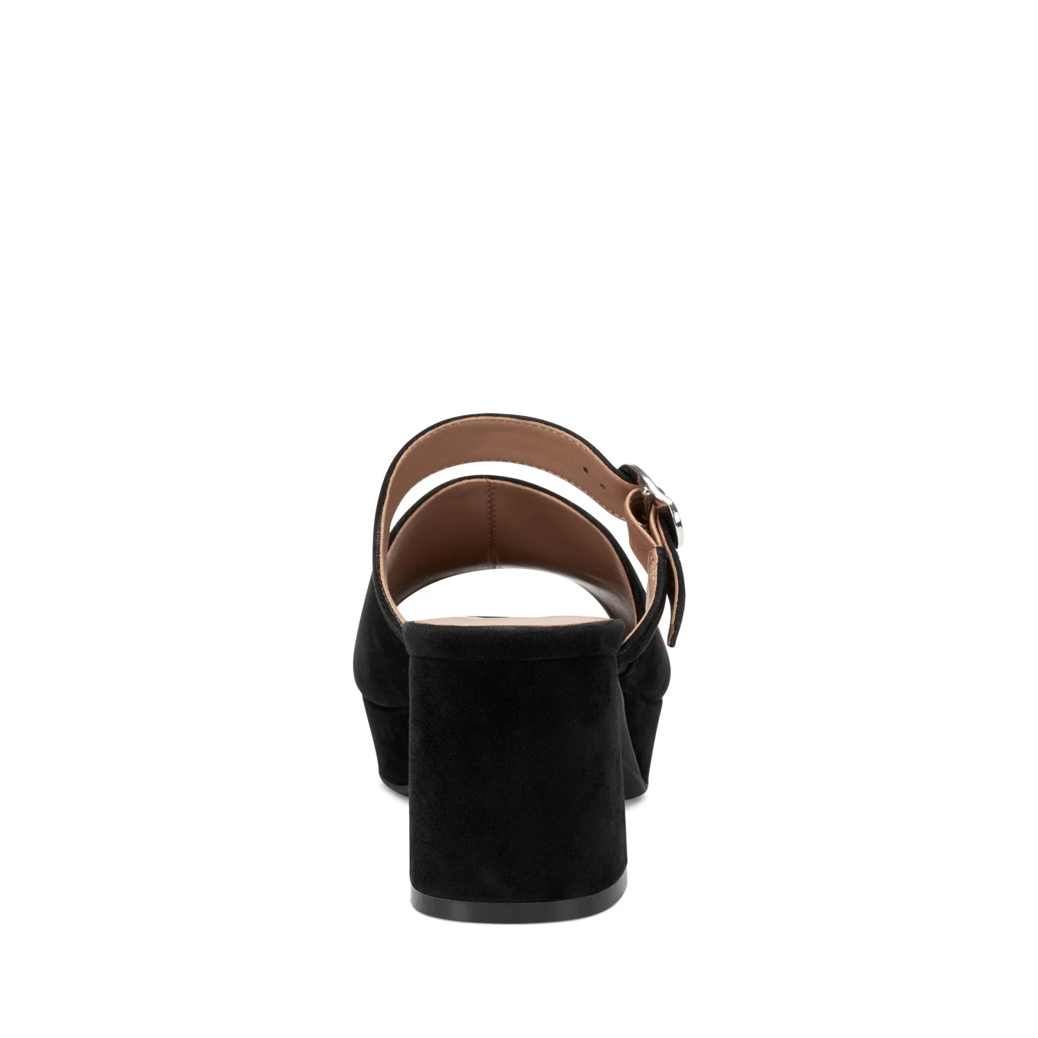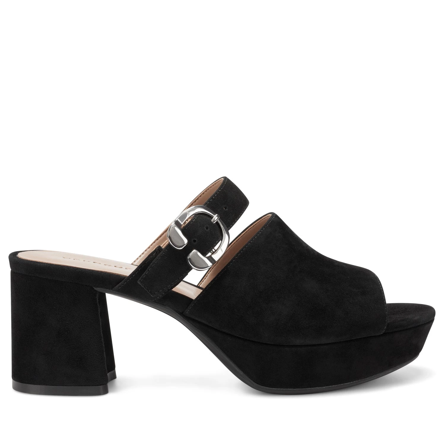 Platform soles add substantial height to our retro-style Cosmic sandal. Crafted in Italian leather, it features an embossed snake print for an exotic textured effect. Signature buckles complete the look with polished perfection. Rubber composite soles with a unique diamond pattern disperse friction away from the foot, ensuring total comfort. 2 1/2″ Heel Height; 1″ Platform. Suede Upper, balance Synthetic Materials.