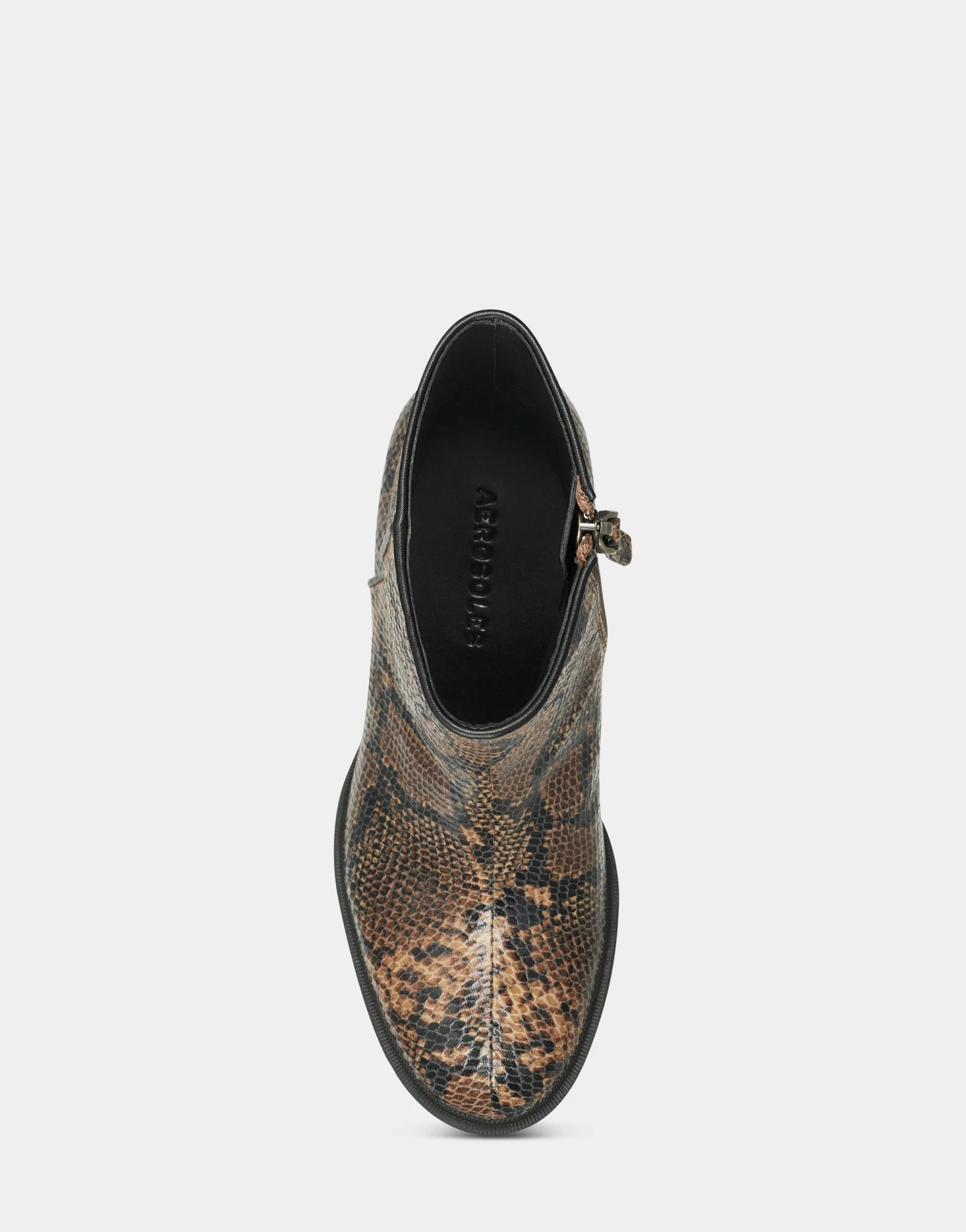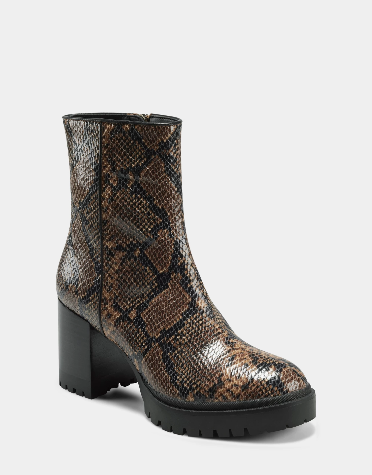 Designed in embossed snake, the Ellie ankle boot provides a versatile style solution all season long—complementing skirts, jeans and virtually everything in between. We love the perennially chic lug sole; finished with a zipper closure. All Synthetic Materials.Â