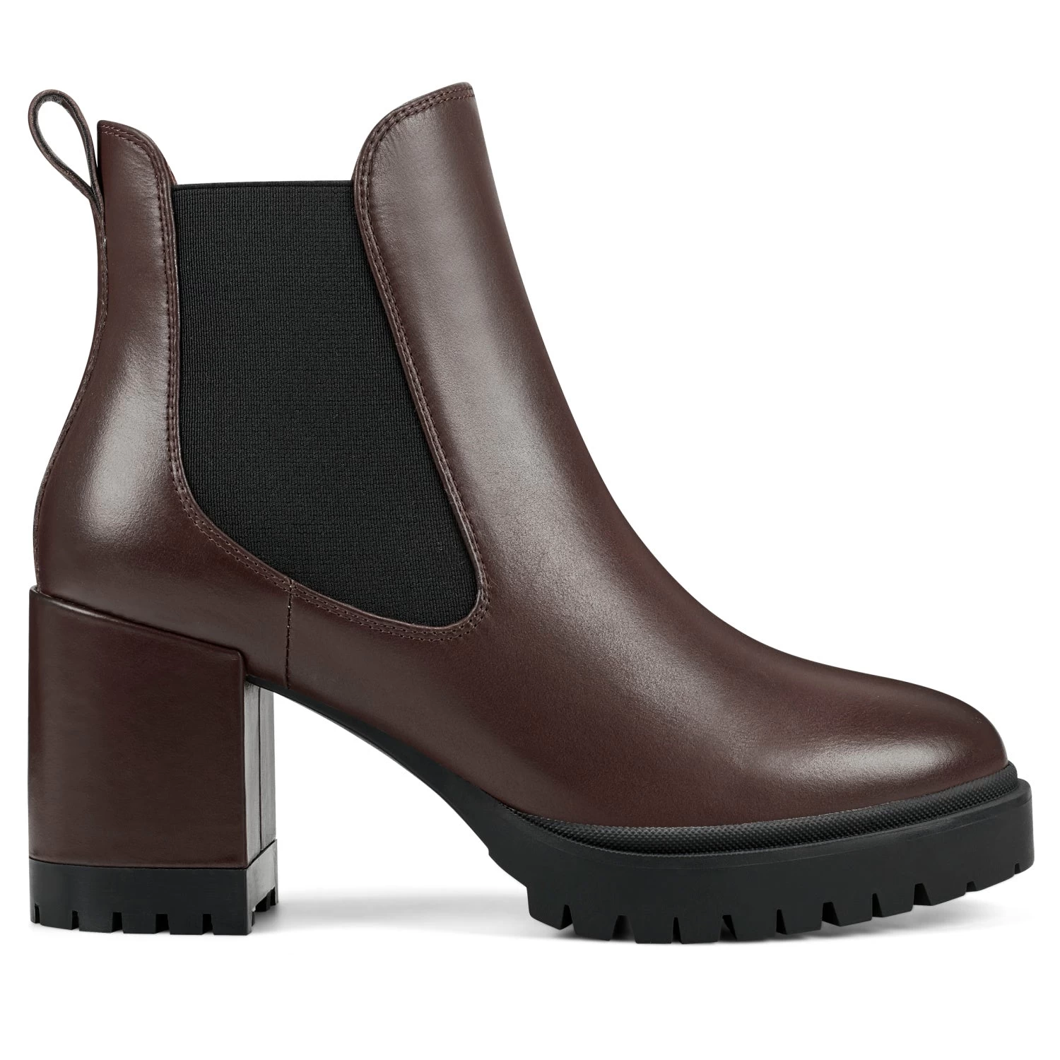 Don’t be fooled by the high stacked heel; the Emelia balances cutting-edge design with total comfort, thanks to the lug platform sole. Goring on the sides and a slip-on design ensure ease of wear. 3 Heel Height. Leather Upper, Balance Synthetic Materials.