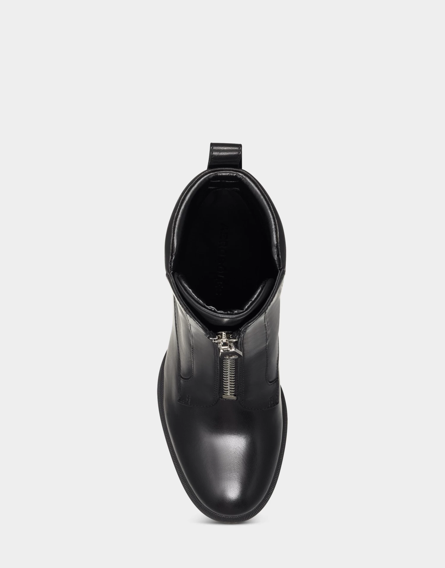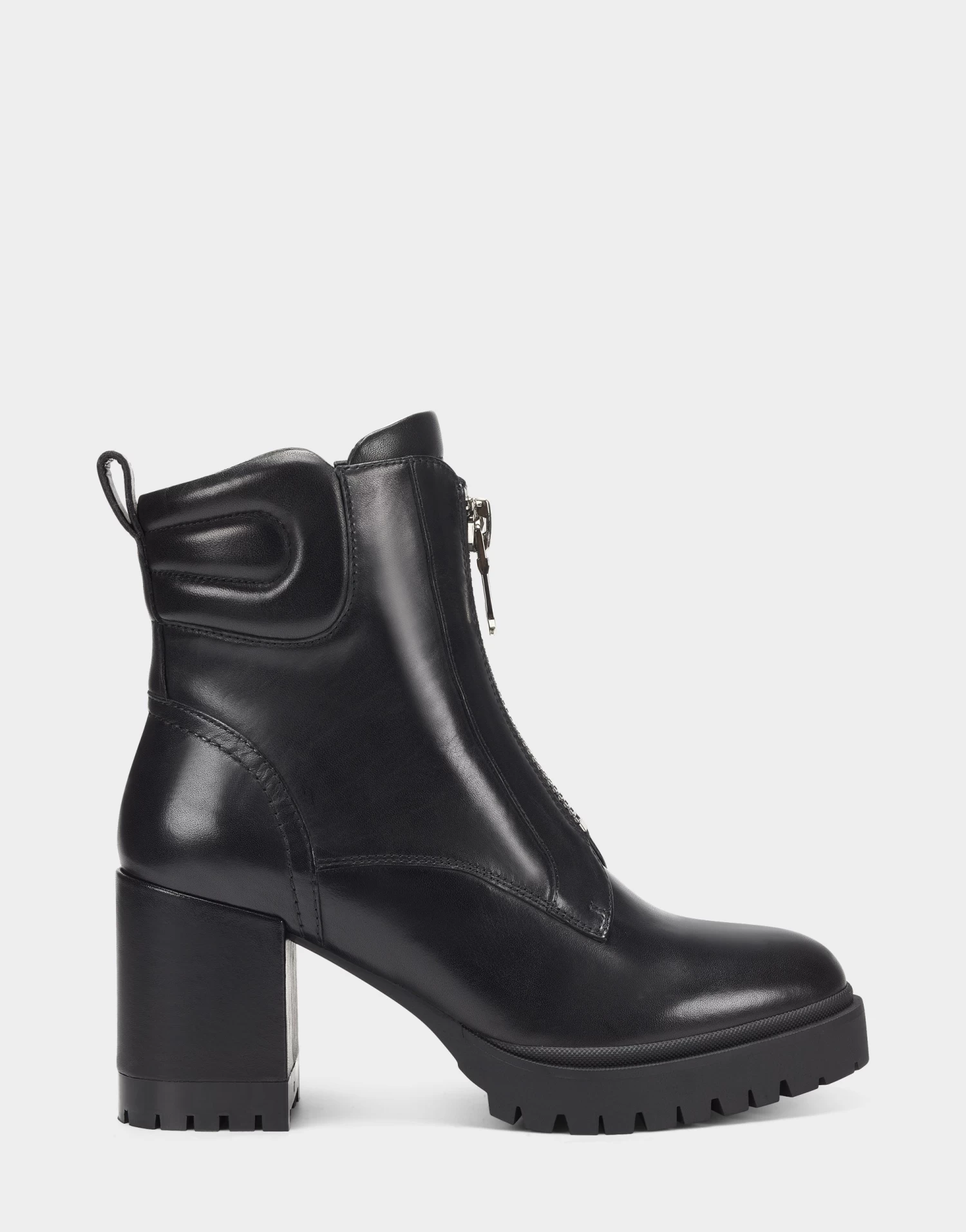| Crafted in black leather with a zipper closure and substantial lug soles, the Everest ankle boot embodies edgy, downtown style. Quilting at the collar enhances the look with an unexpectedly luxe touch. |