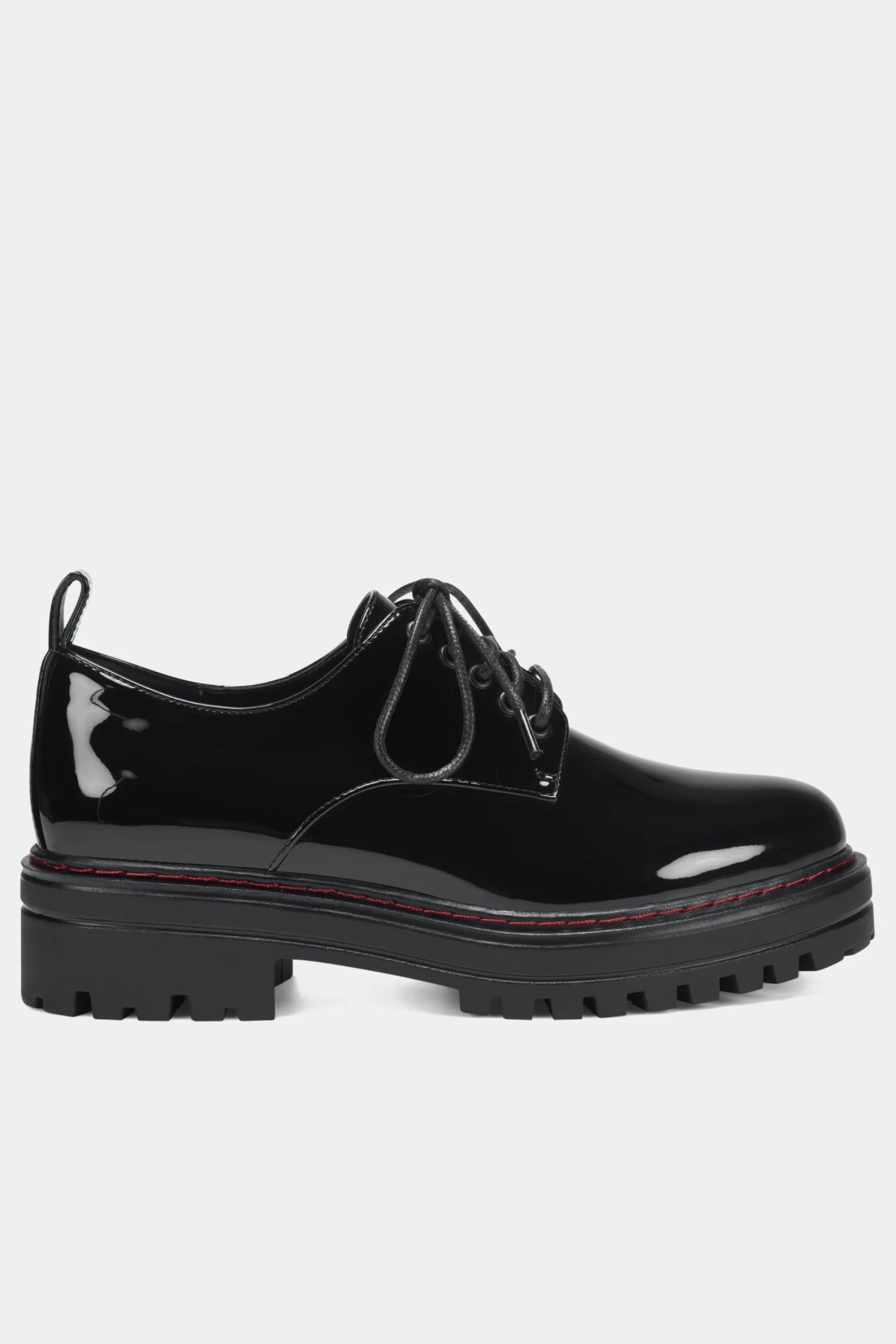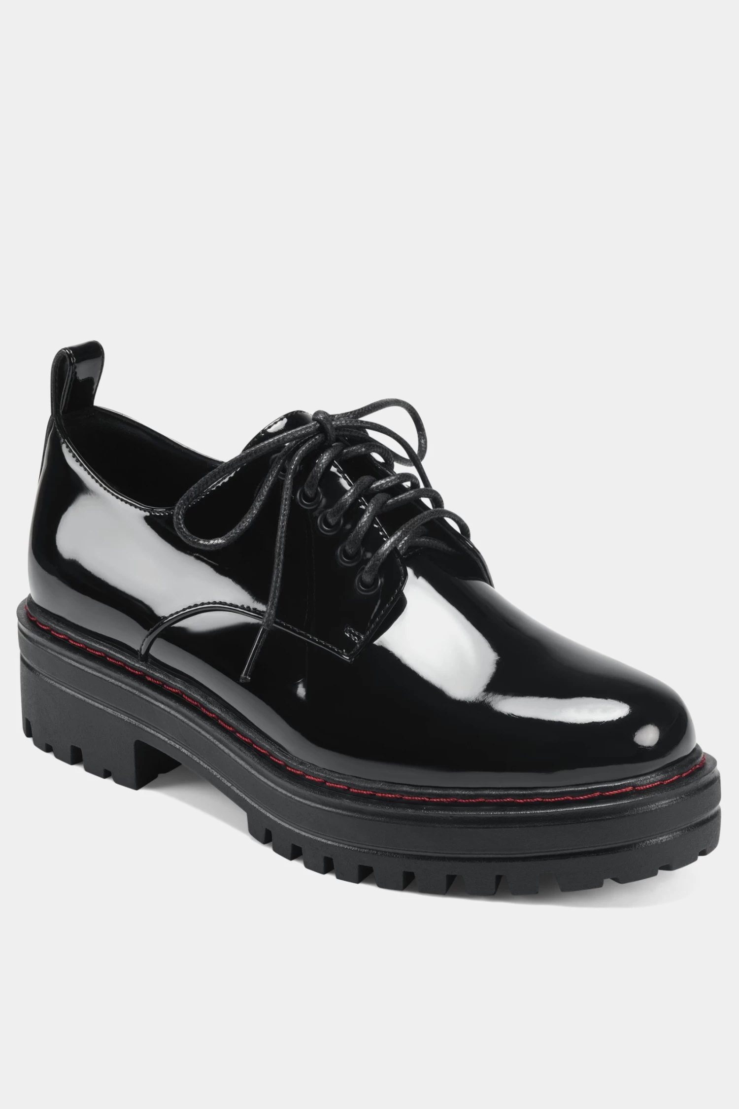 Polished to perfection, the high-shine patent brings a glossy finish to the Francesina, a classic oxford. With a lace-up closure, it’s finished with substantial rubber lug soles. A perfect match for tailored pants at the office or with jeans/leggings on weekends.