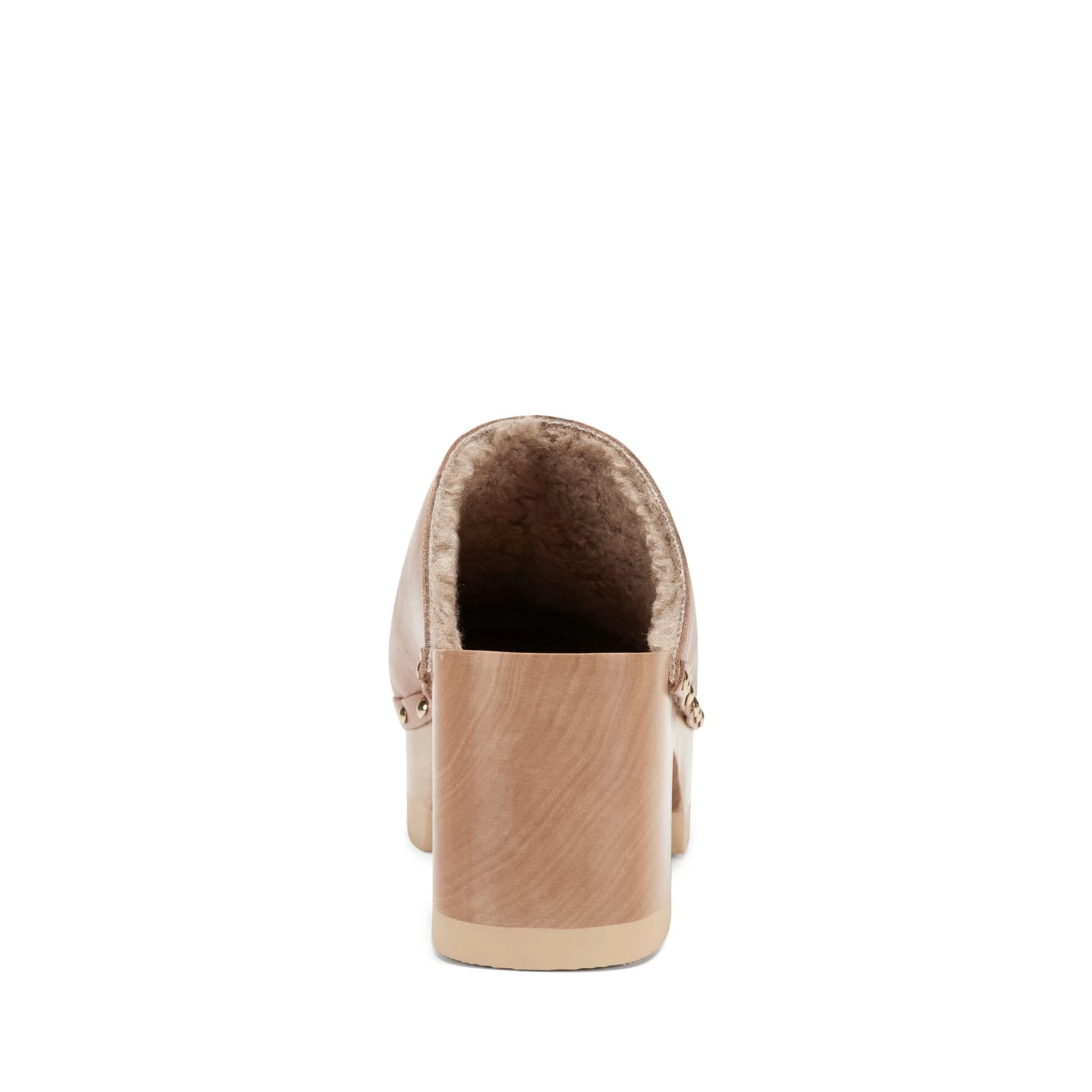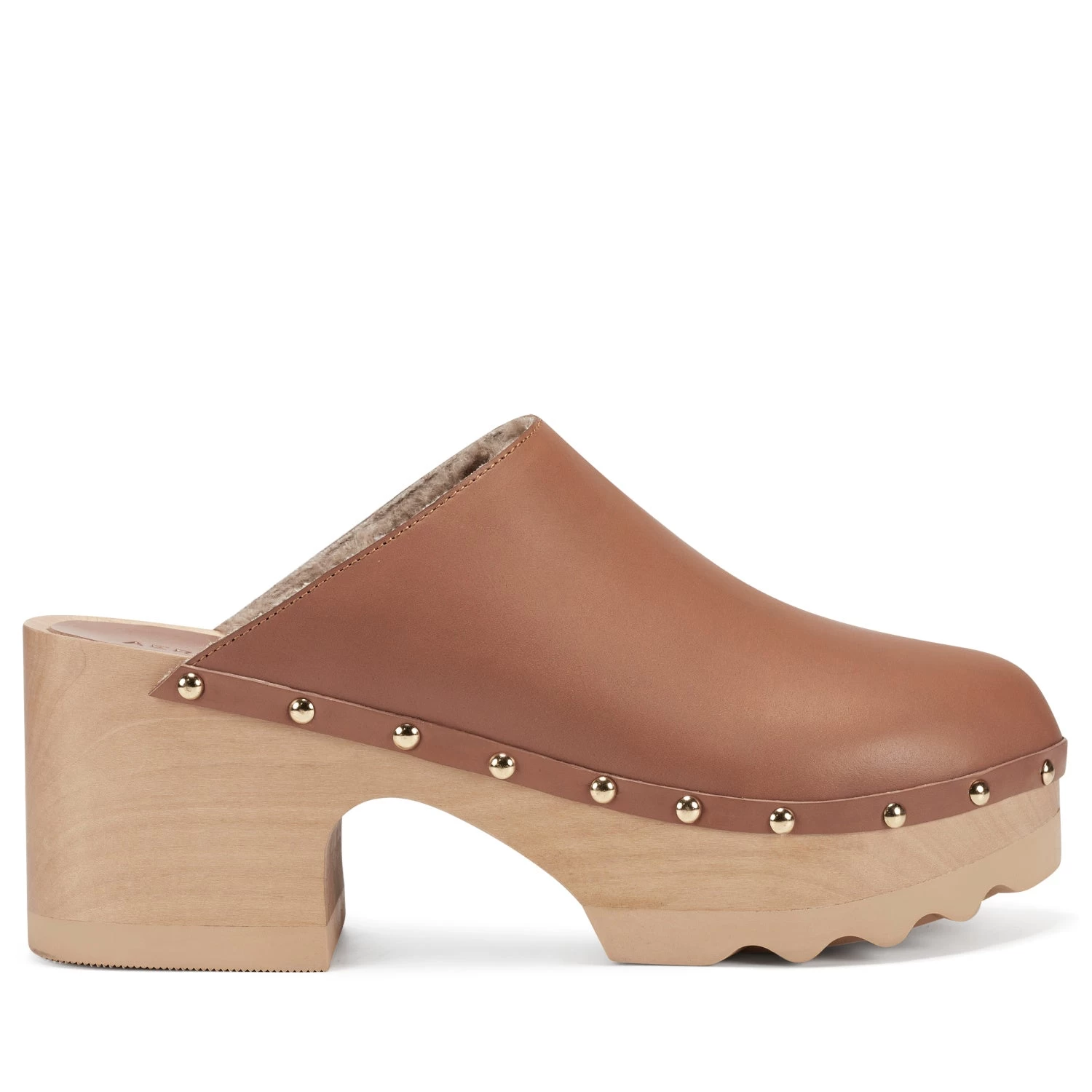 Wooden soles and polished nail heads add retro-inspired accents to the Fury clog, crafted in leather and lined with soft faux fur. Pairs perfectly with faded jeans or a long, flowy boho skirt. 2 3/4″ Heel. Leather Upper, Balance Synthetic Materials.
