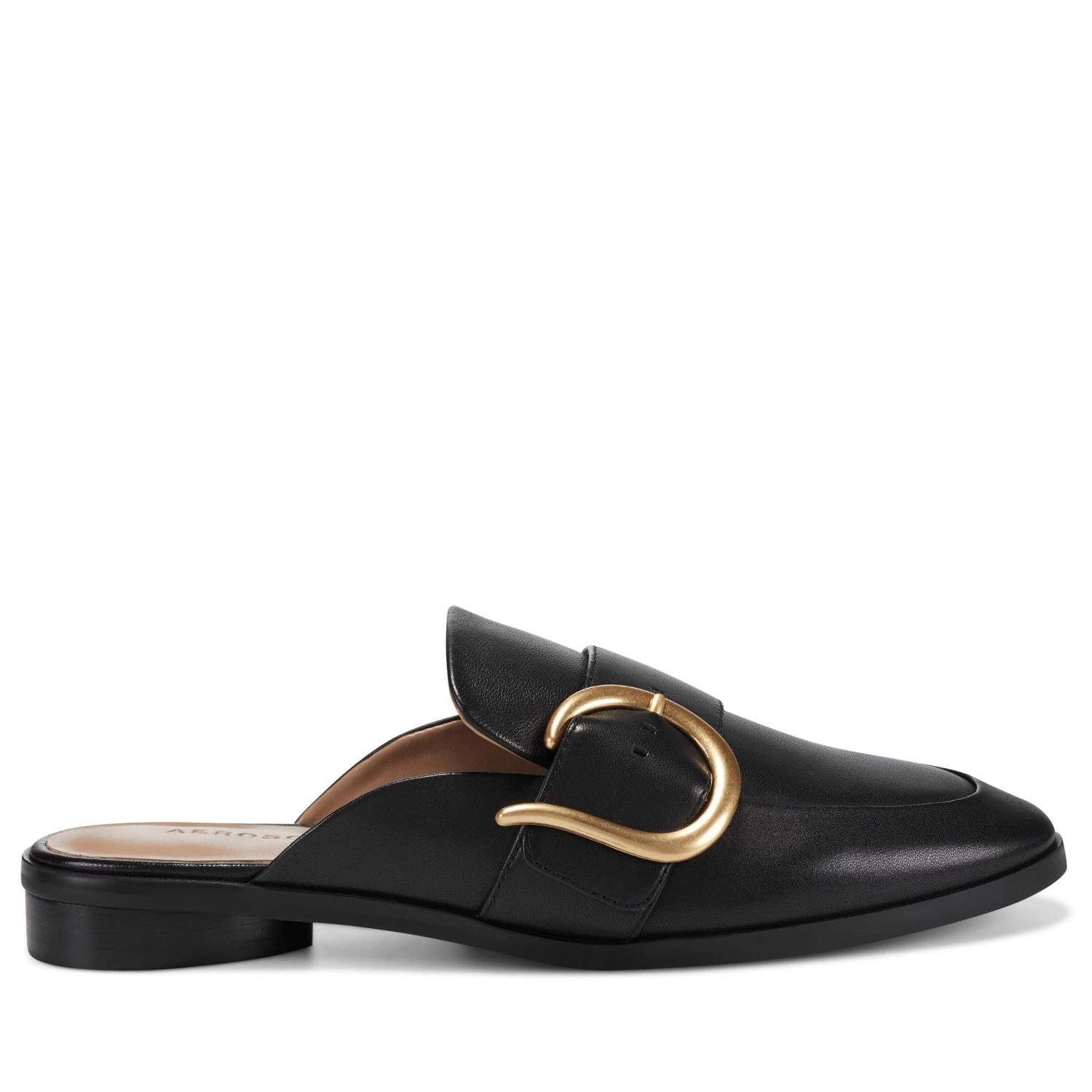 - An impossibly chic choice that translates from work to weekends in style and with ease. Loafer and mule silhouettes blend seamlessly in the Grandprix, a bold block-heel style accented by a polished gold tone buckle. 1″ Heel Height. Leather Upper, Balance Synthetic Materials.