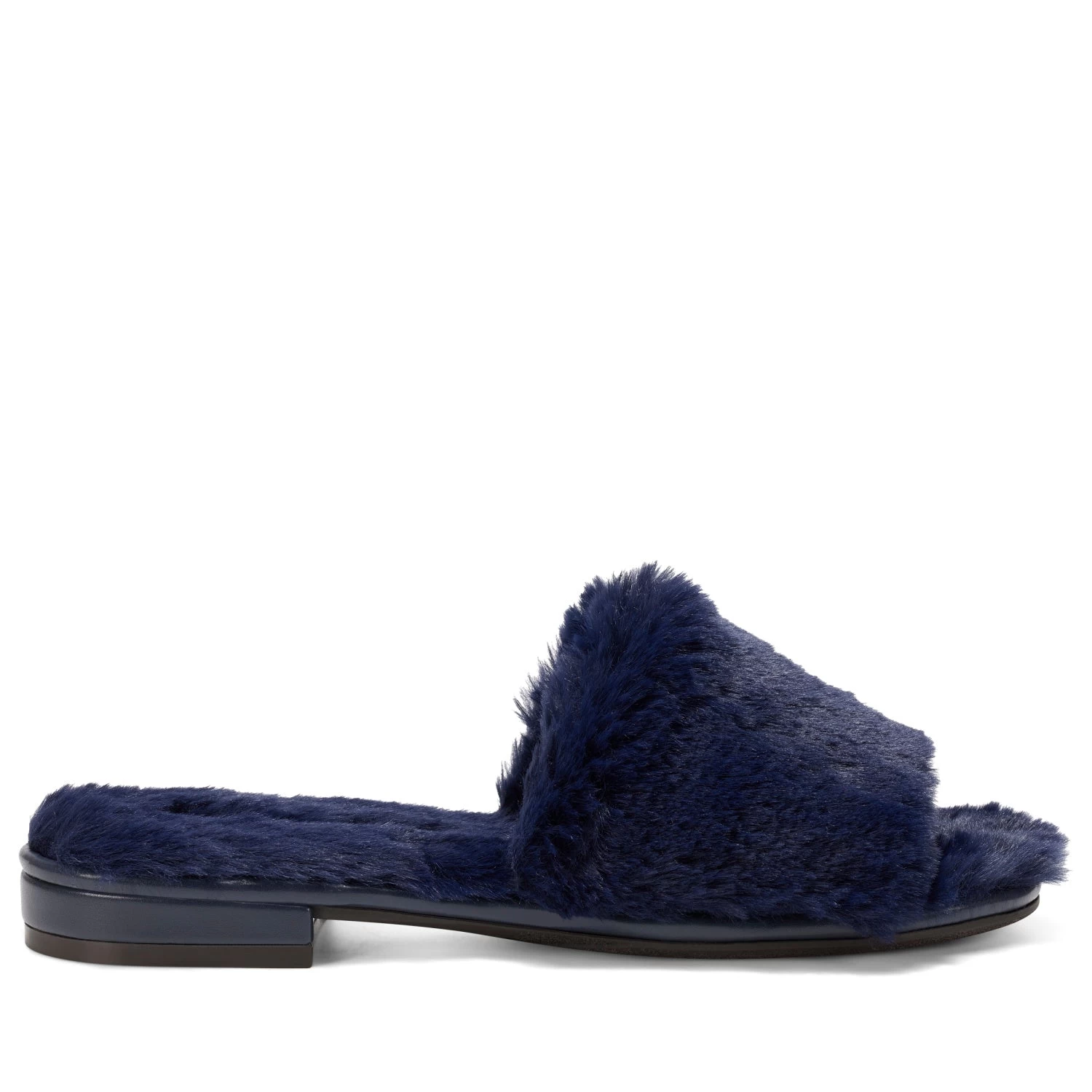Sporty style with a luxe twist: Soft faux fur uppers and lining make a plush statement on our Jocelyn slide sandal. Designed for both indoor and outdoor wear, it’s a go-to finishing touch for your loungewear look. 3/4″ Heel. All Synthetic Materials