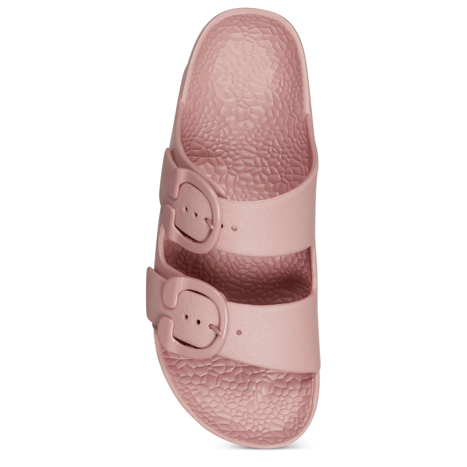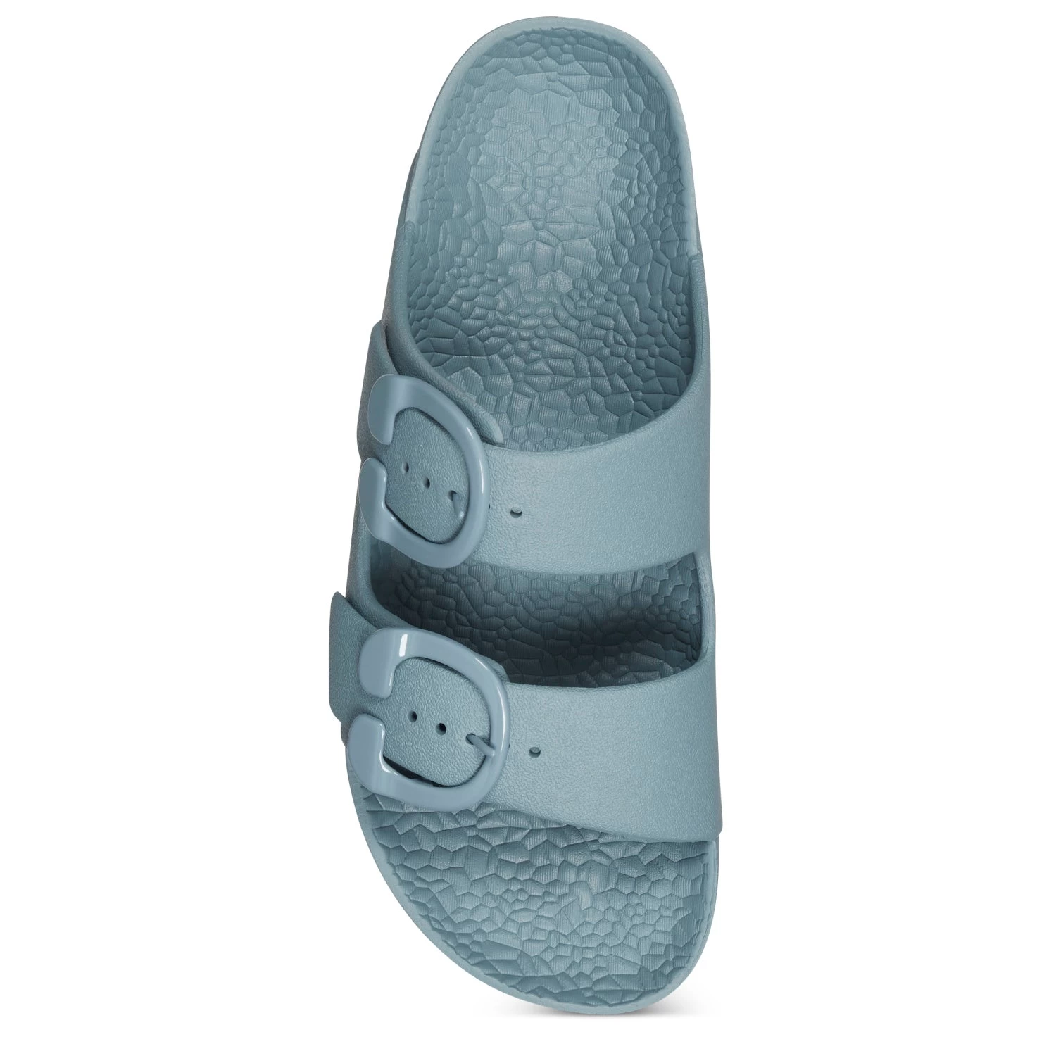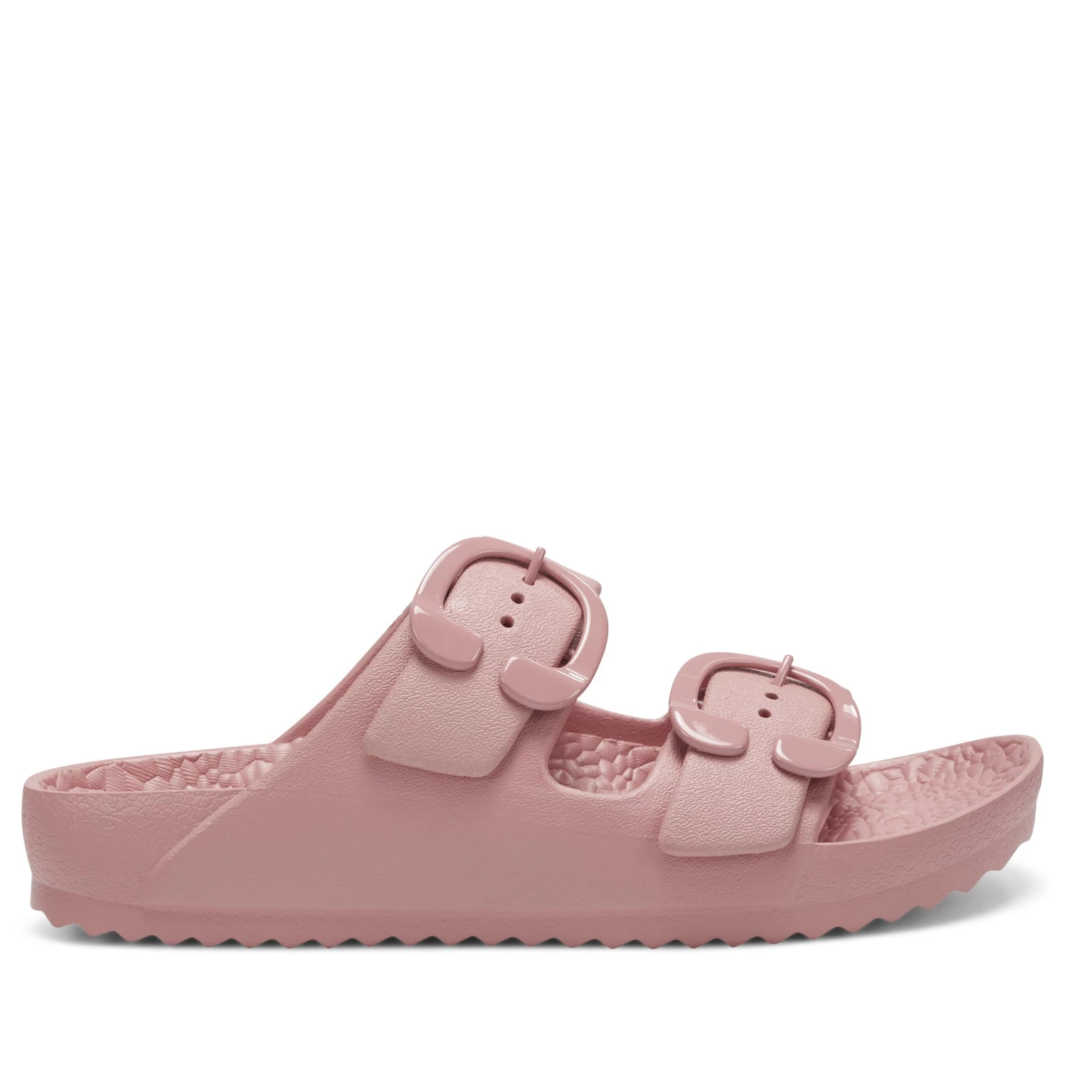 Oversized new signature buckles make this timeless, trendy and water-resistant molded slide this season’s essential. A molded footbed and slip-on design ensure unlimited comfort and ease of wear, making it a go-to look for your off-duty style.ย