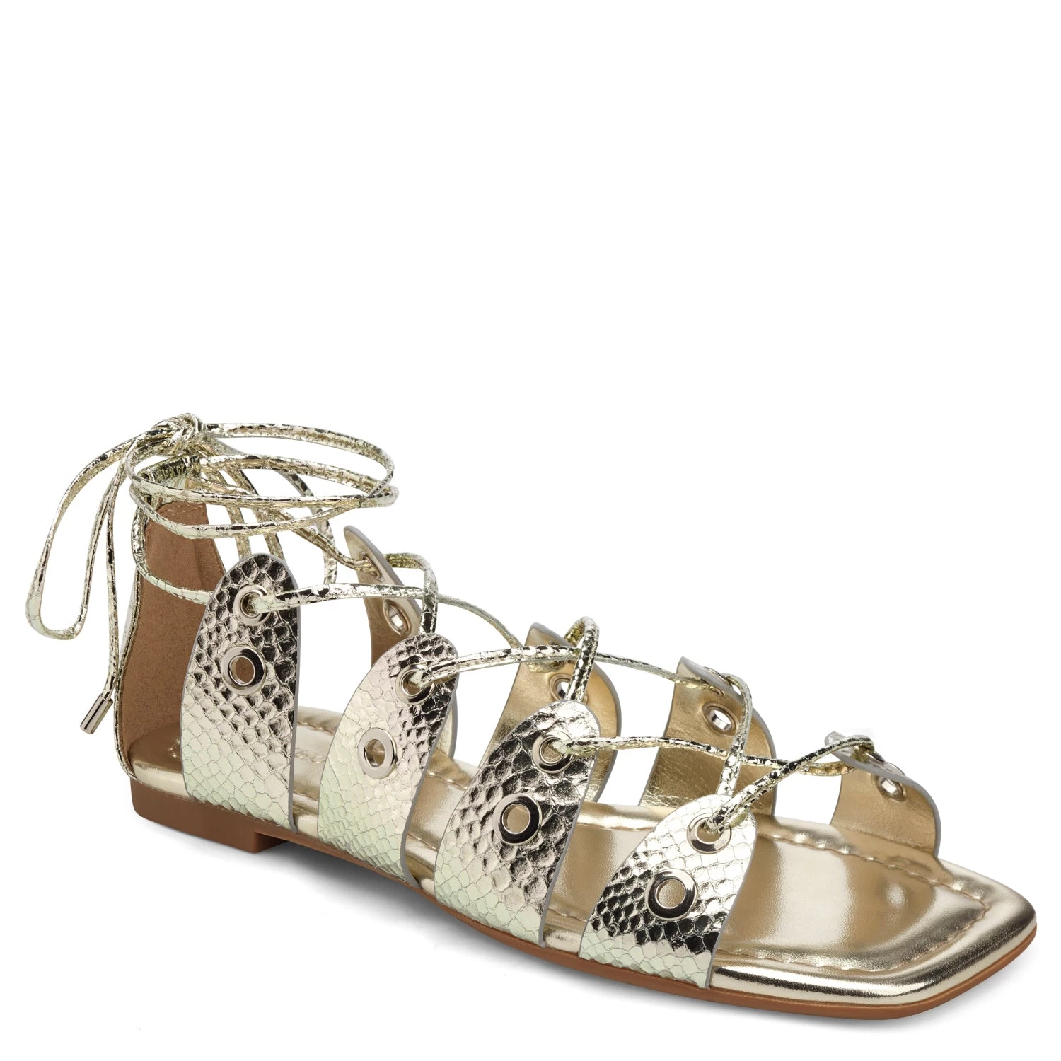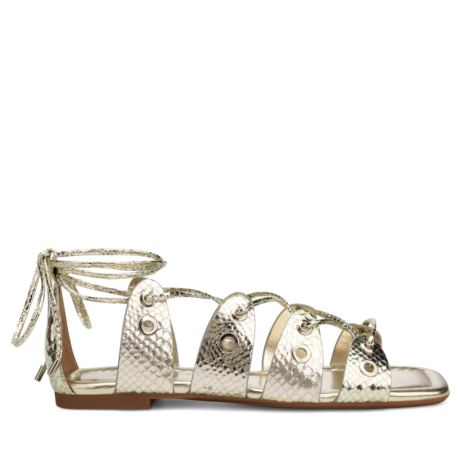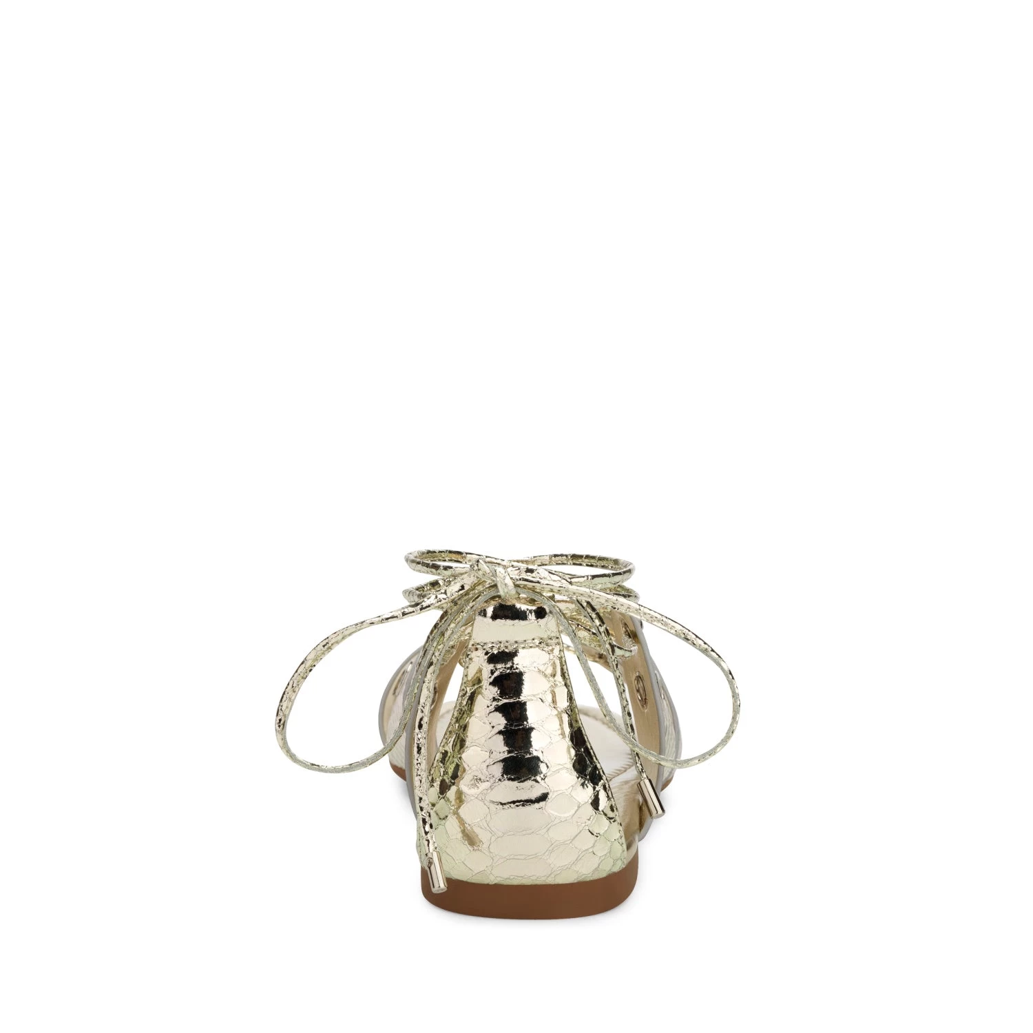 - Shine on: a mirror metallic finish illuminates the Kathleen, an intricately laced, Ghilliie flat. Metallic python embossed Italian leather upper elevates the look, which pairs perfectly with your most-loved maxi dresses all season long. 1/4″ Heel. Leather Upper, balance Synthetic Materials.