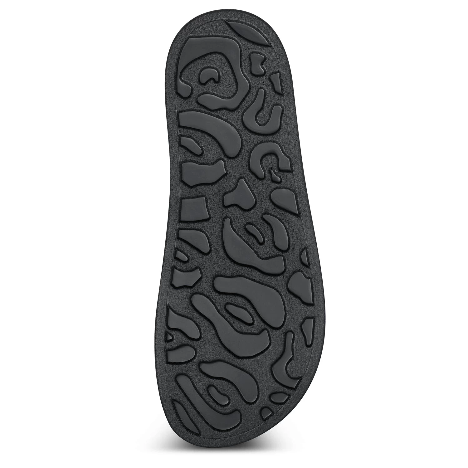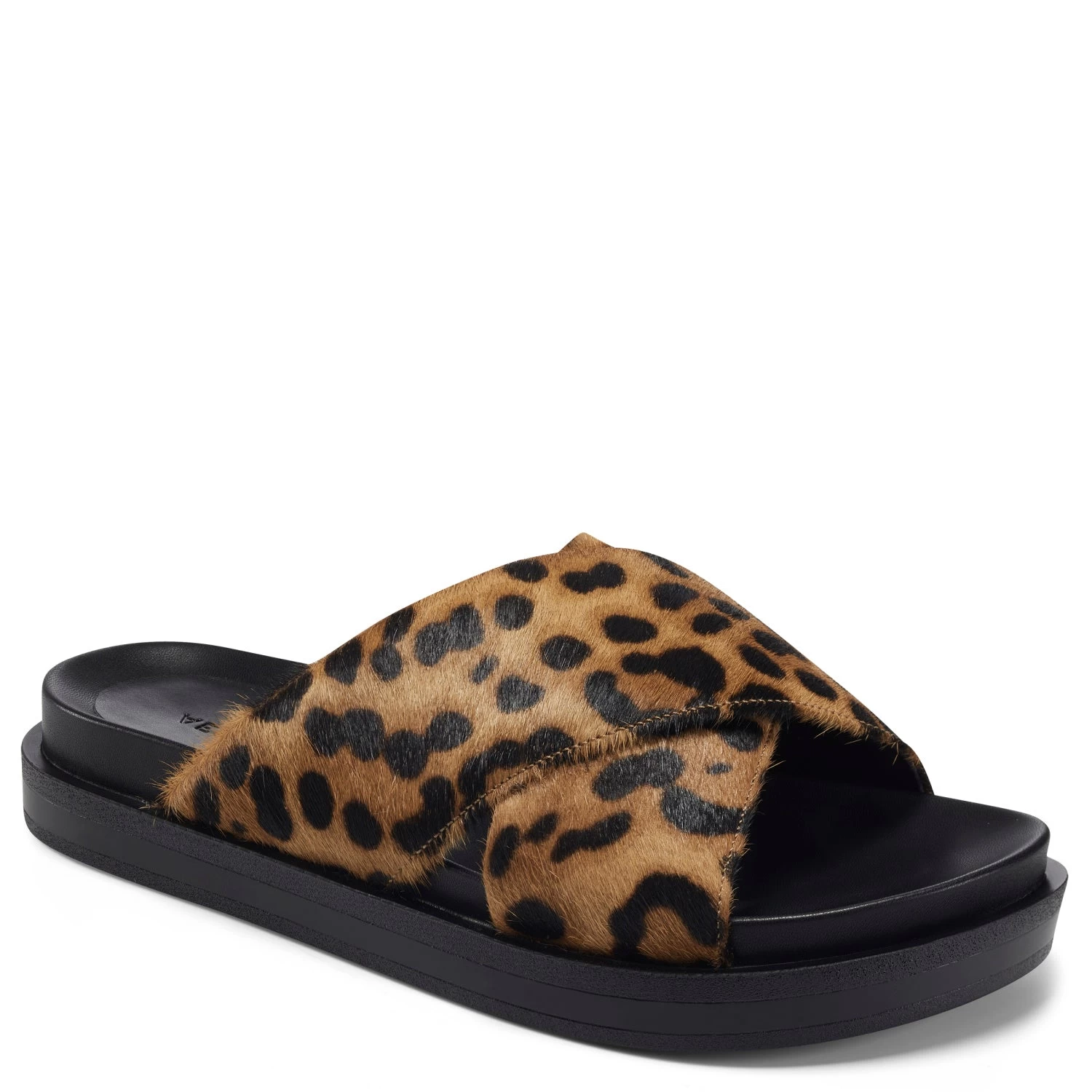 - Make a statement without sacrificing comfort. This slip-on sandalโs soft, crossover design provides versatility for day and night. Its cushioned sole helps put a gentle spring in your step. 1 1/4″ Heel Height. Leather and Synthetic Upper, Balance Synthetic Materials