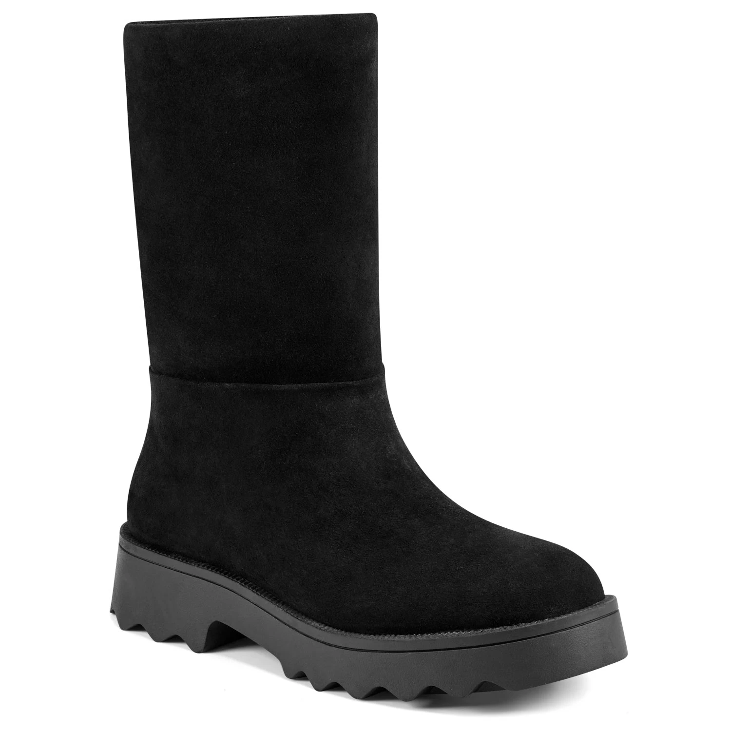 Transition into the new season in style and with ease, thanks to the Simple boot. Crafted in soft suede, it features a versatile mid-calf silhouette; sturdy lug soles complete the look with an on-trend touch. Pairs perfectly with a long, flowy skirt, slim pants or a beloved pair of faded jeans. 1 1/2″ Heel. Suede Upper, balance Synthetic Materials