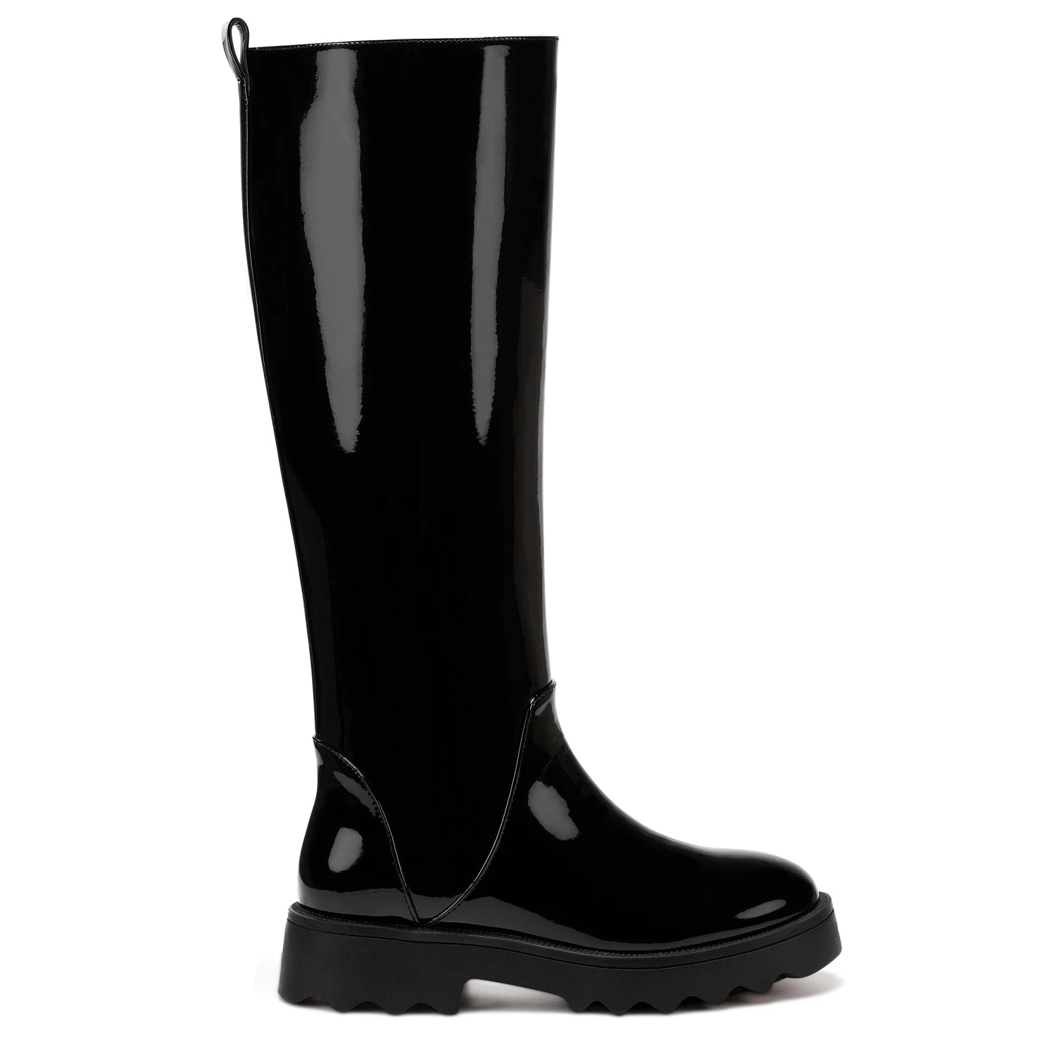 Sleek meets chic: Stay protected from the elements in style via Slalom tall pull-on boot. Designed in waterproof rubberized material with a sophisticated matte finish; an on-trend lug sole further enhances the look. 1 1/2″ Heel. All synthetic materials.
