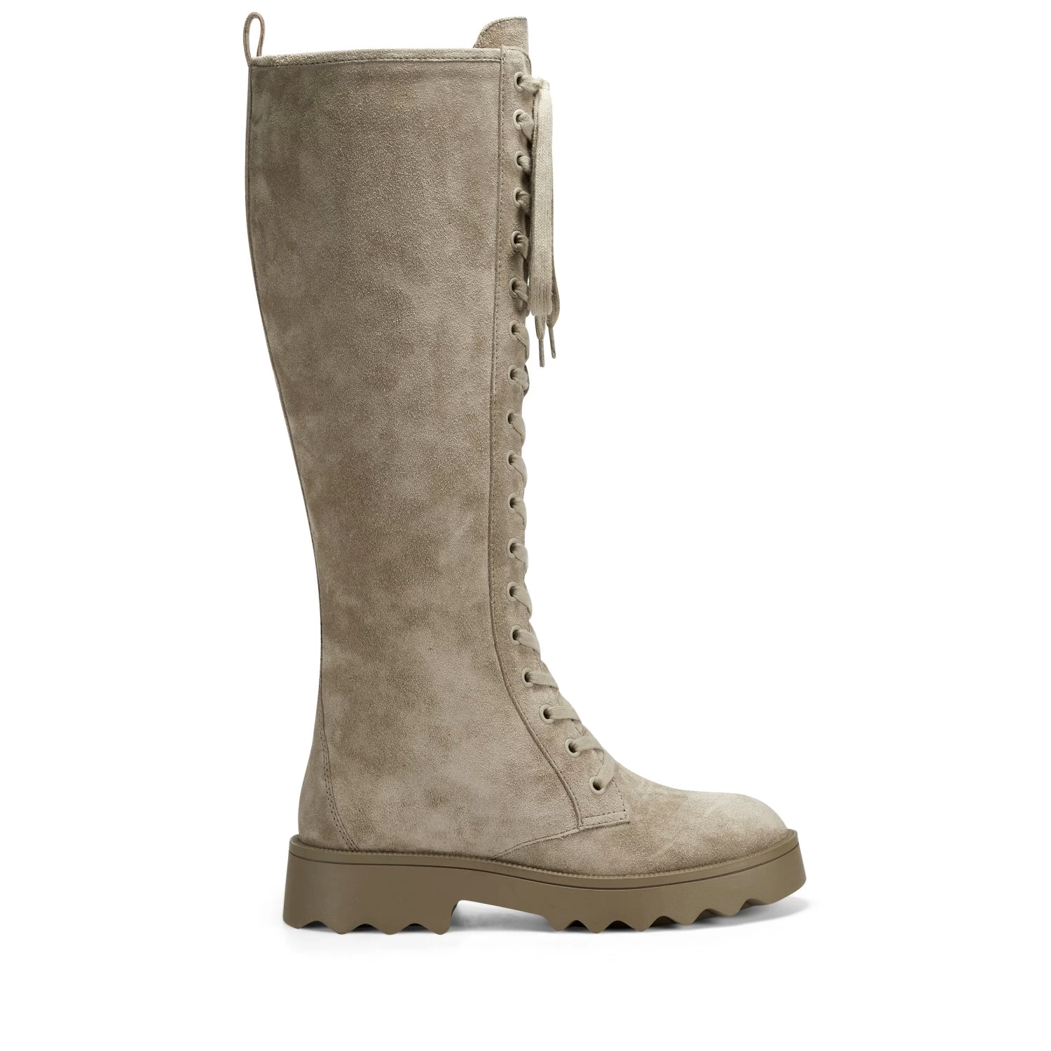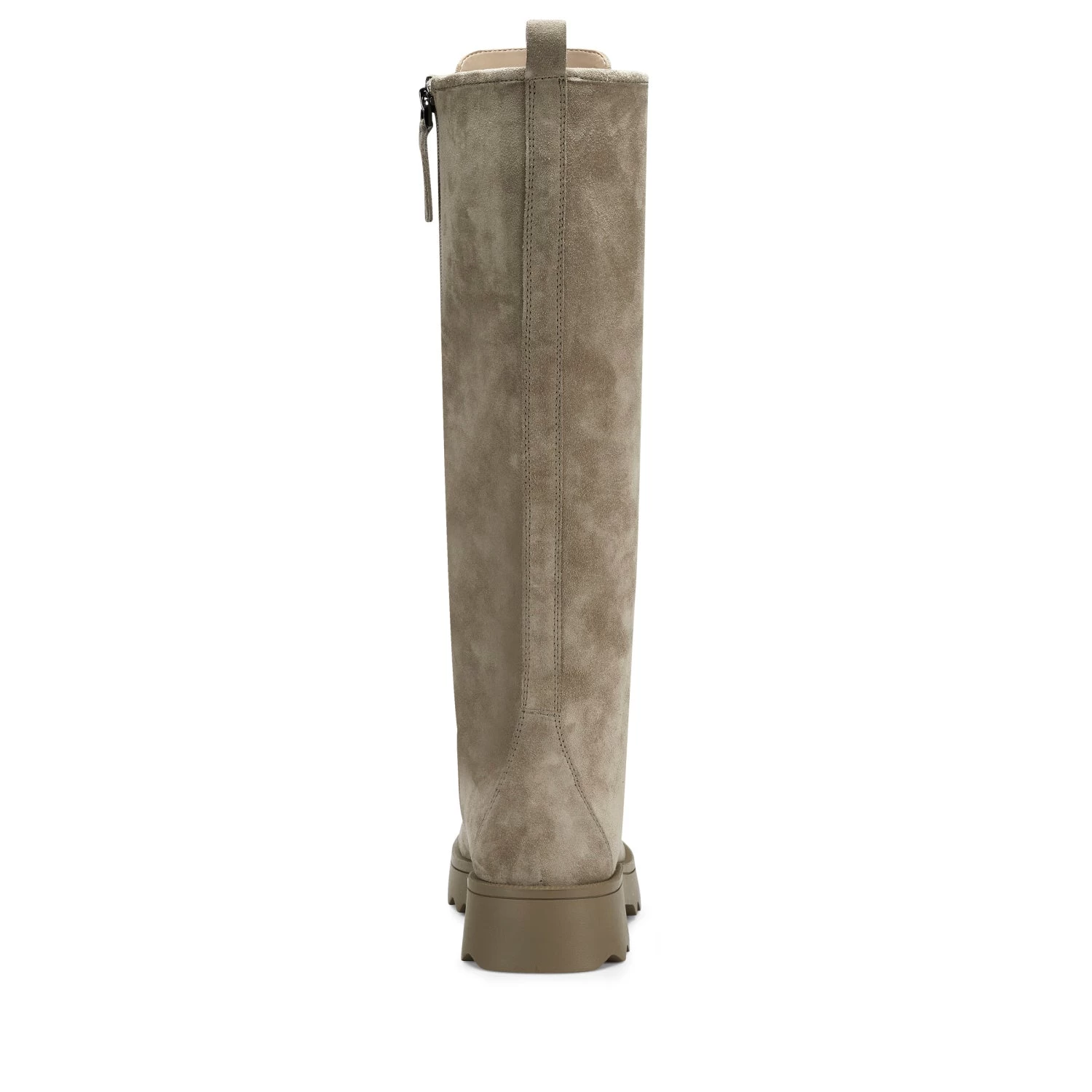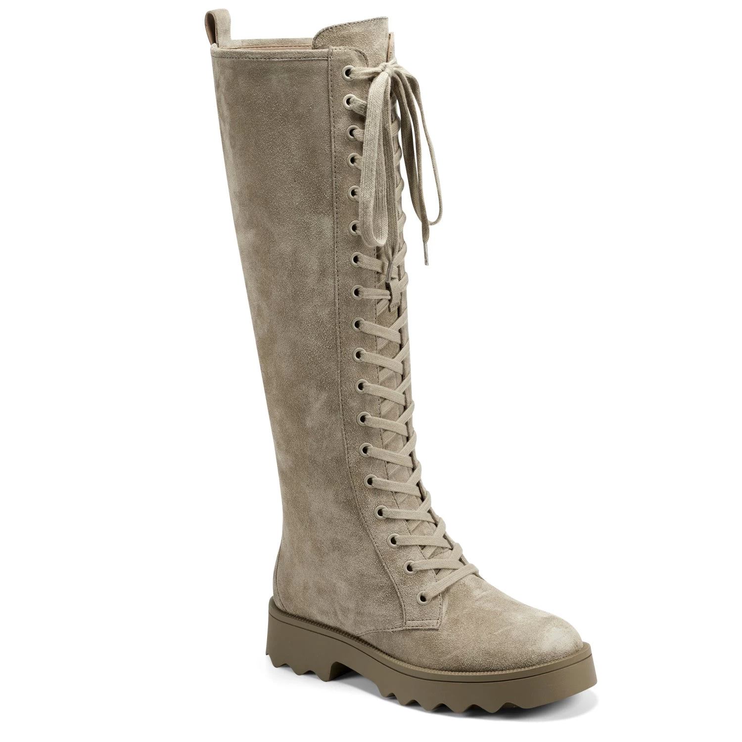 Soft suede elevates the Star, our cool-girl combat boot updated with a knee-high silhouette. The lace-up closure adds an edgy twist; lug soles and an interior zipper closure complete the look. A chic complement to a tailored pencil skirt and opaque tights. 1 1/2″ Heel. Suede Upper, balance Synthetic Materials.
