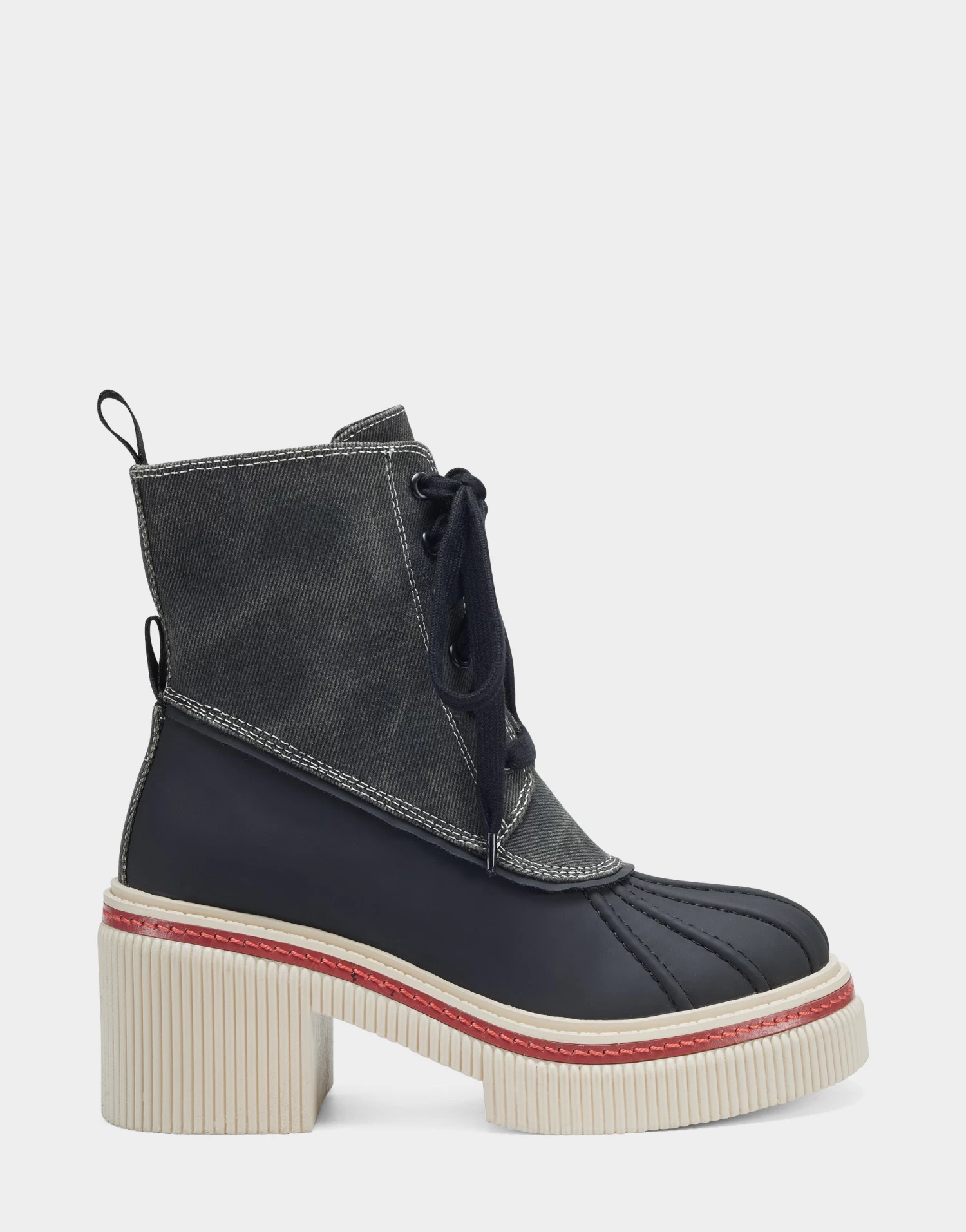 Red haute: A contrast stripe on the outsole adds just the right pop of color to our Stellar boot. Designed in a combination of waxed canvas and rubberized faux leather, it’s finished with a lace-up closure. A go-to look all weekend long: Think jeans and a sweater or leggings and a tunic top.ย