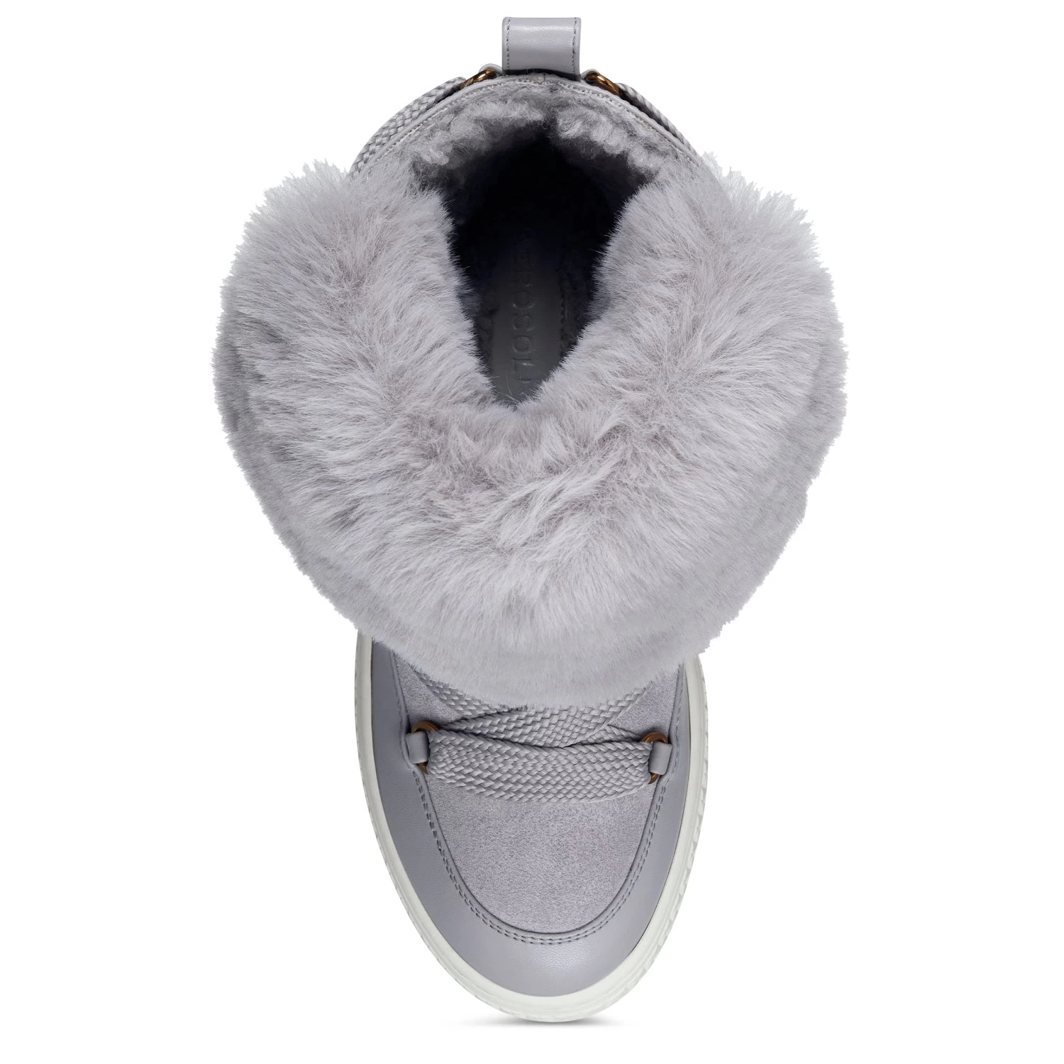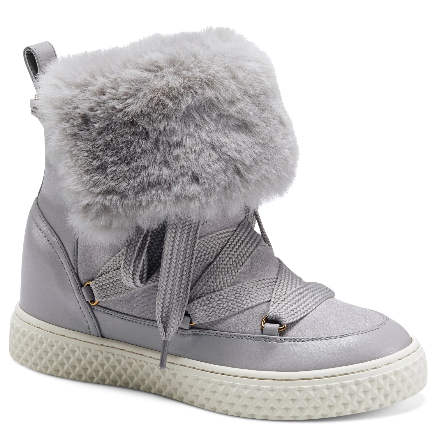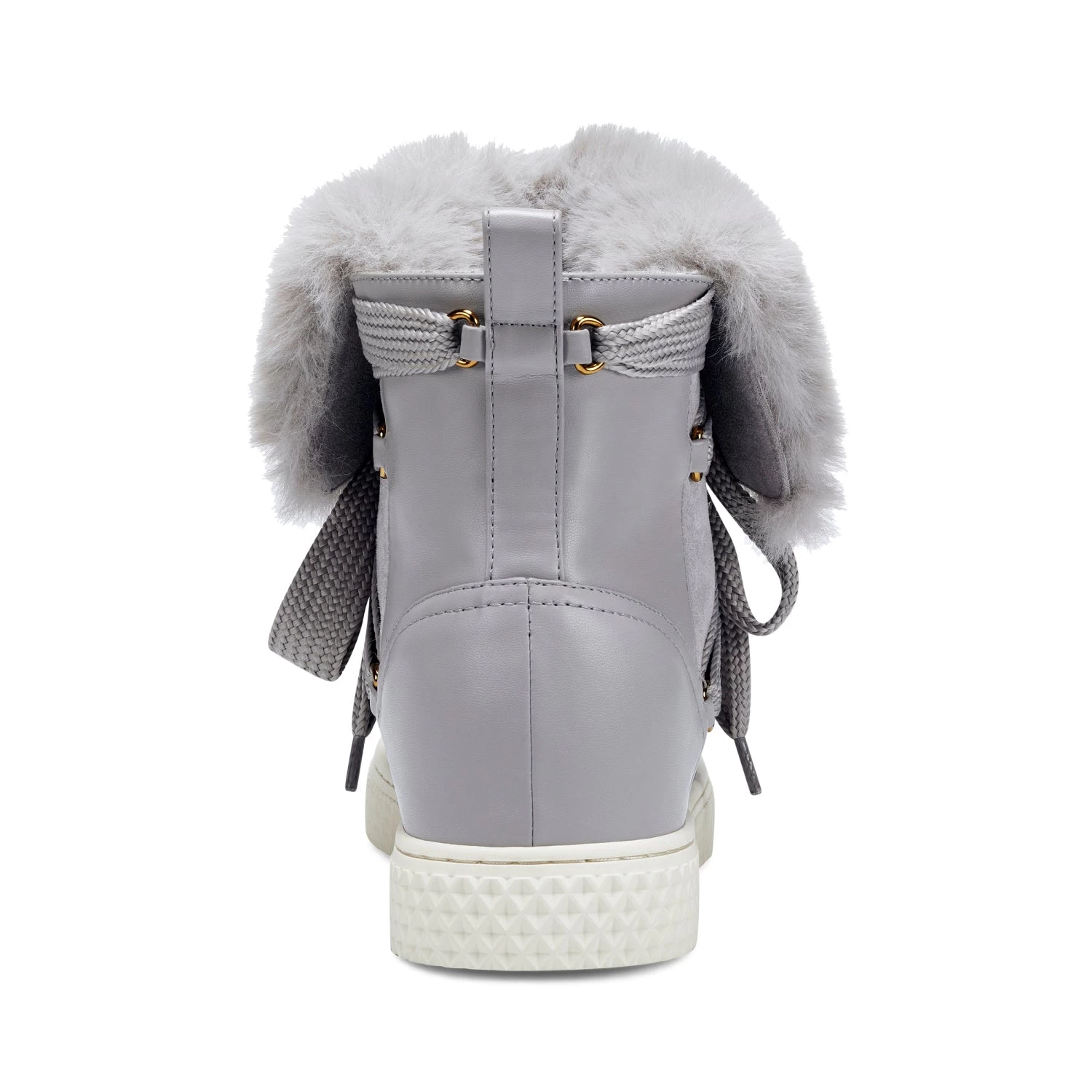 Warming trend: Cozy up to the Zoya lace-up boot, featuring a plush faux-shearling cuff. Textured cupsoles complete the look with a sporty twist. 1 1/4 Heel. All Synthetic Materials.
