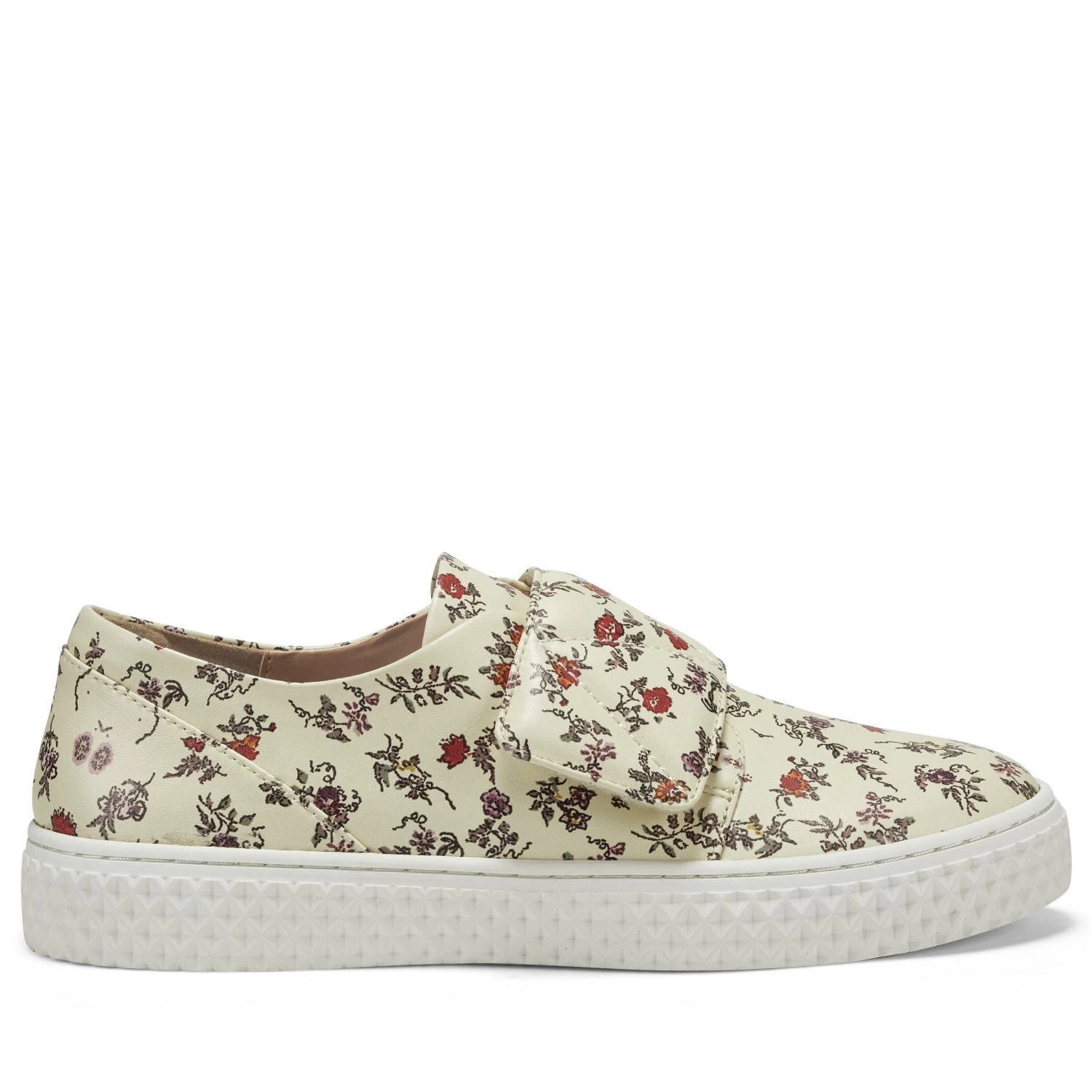 Introducing Aerosoles Aware x Laura Ashley?โour eco-friendly vegan collection featuring nostalgic floral prints from the iconic British brand. With a classic low-top silhouette, the La Ebbie sneaker features a quilted Velcro strap on the upper. An intricate diamond texture on the cupsole elevates the look. 3/4″ Platform Height. Printed Vegan Leather, Synthetic Materials.