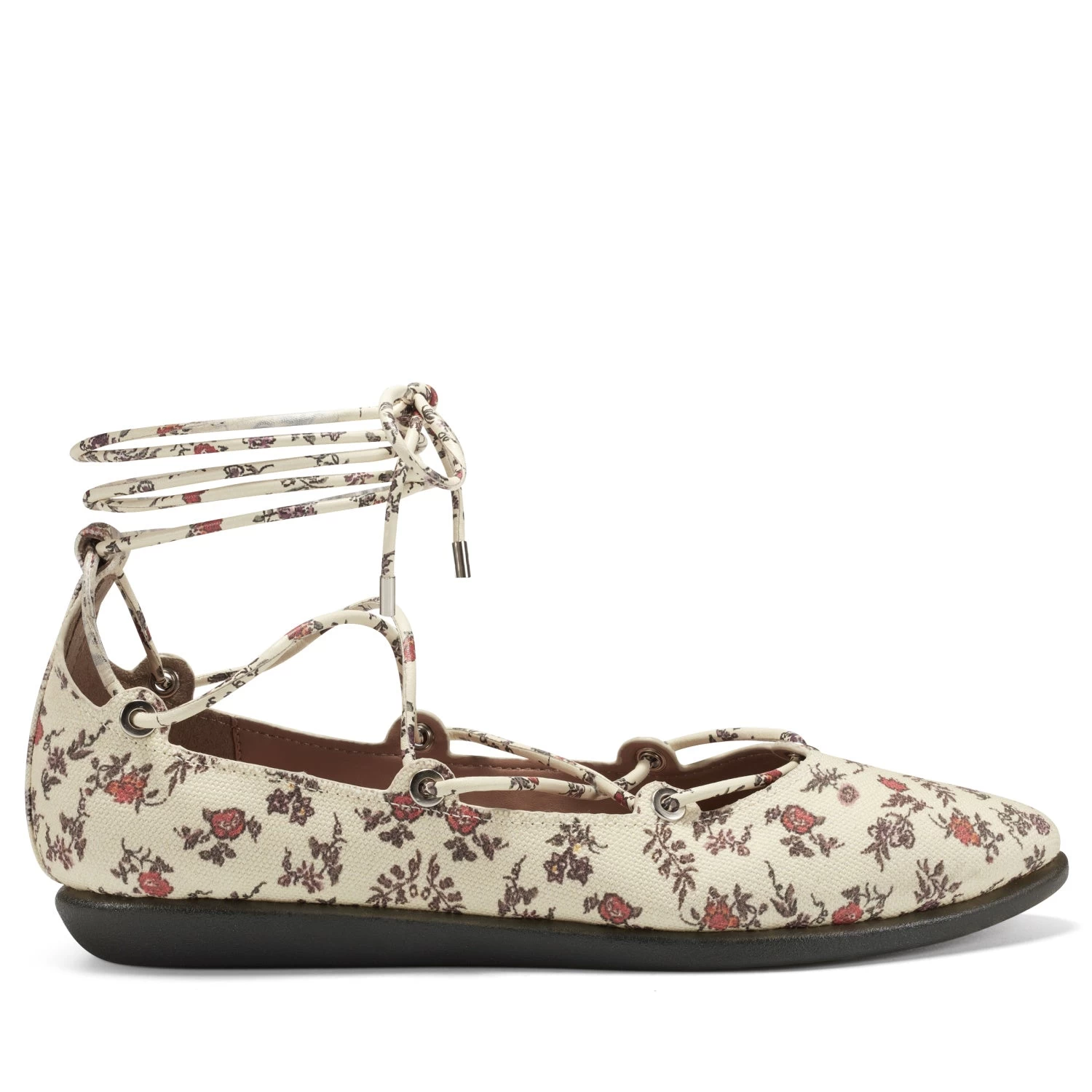 Introducing Aerosoles Aware x Laura Ashley?—our eco-friendly vegan collection featuring nostalgic floral prints from the iconic British brand. Our signature Stitch ‘N Turn design lets you move with grace and ease in the La Venezuela, a fashion ballerina flat inspired by authentic dance shoes. Crisscross straps and eyelet details further define this style—a chic complement to sleek trousers or soft, flowy skirts. 3/4″ Heel Height. Printed Canvas, Synthetic Materials.